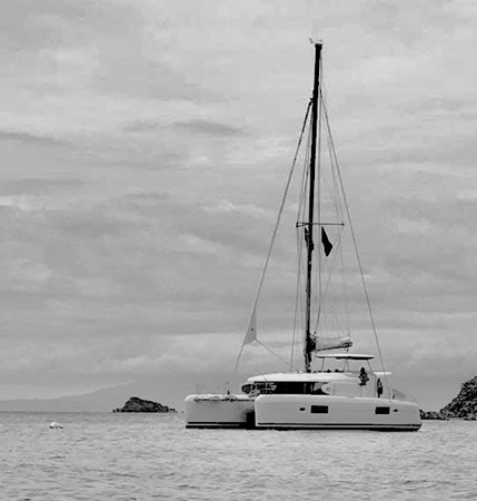 This Beautiful Catamaran has equipment featuring Flybridge 4/4 configuration, Solar panels, Generator , Salon & Cockpit GPS plotter. This Yacht boasts Heating & Air Conditioning , audio system, outside speakers and on Flybridge . C lassic Mainsail w Lazy Bag & Furling JIb, electric winches,. The fully-equipped galley includes a Water-Maker, microwave, coffee machine, fridge, oven and cooker & BBQ .