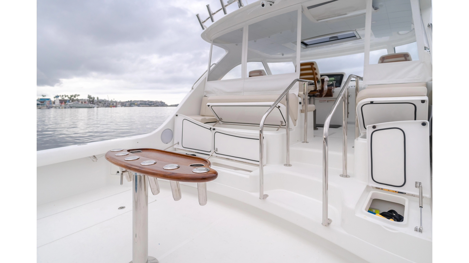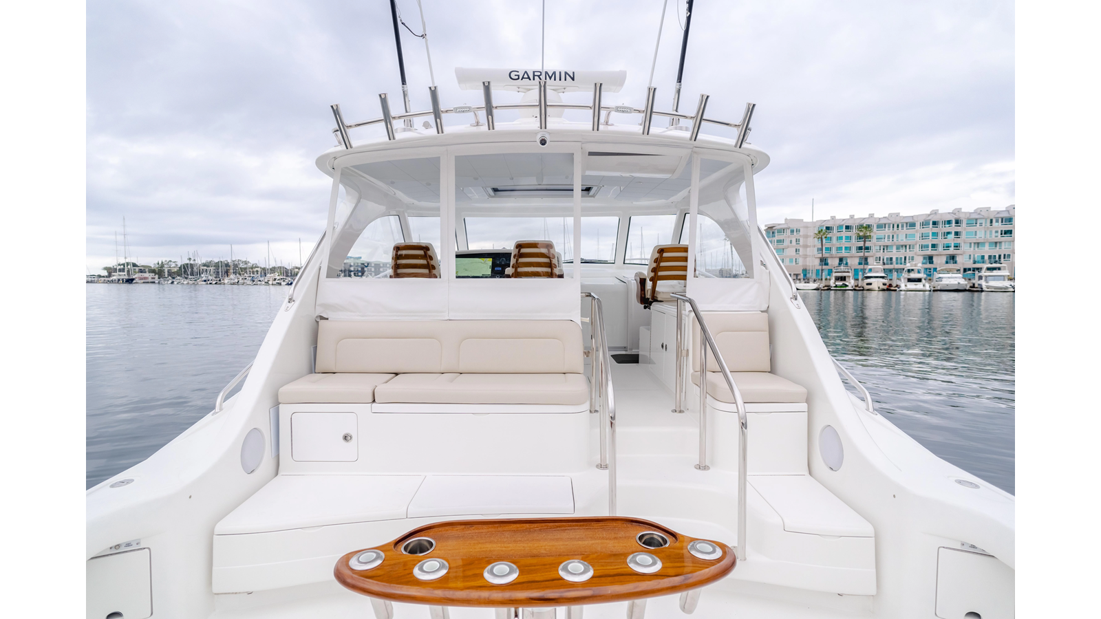 Powered by robust Volvo D13 engines paired with ZF transmissions, straight shafts, and 4-blade props, she delivers exceptional performance. The transferrable Volvo extended warranty ensures peace of mind for her next owner. Fully equipped with brand-new, top-tier fishing gear included in the sale, COMMODORE TWO is a fisherman’s dream.