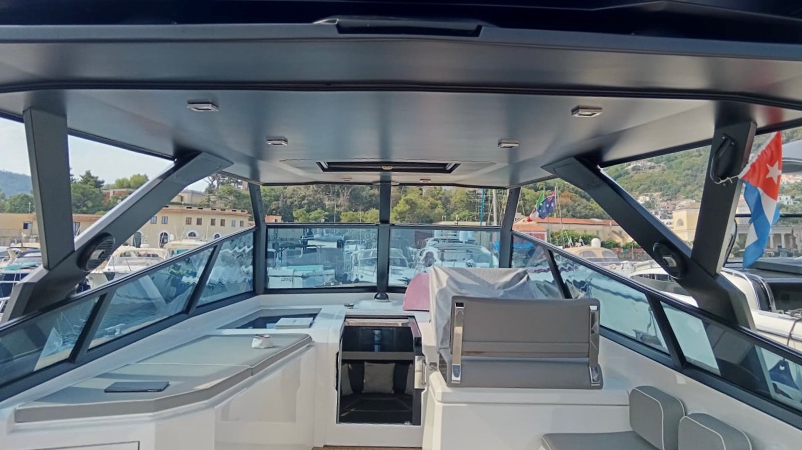 The Evo 43 is a striking 2016 model that perfectly embodies Italian innovation, craftsmanship, and design. Measuring 13.12 meters in length with a maximum beam of 4.52 meters (extending to 6.32 meters with the expandable bulwarks) and a draft of 1.10 meters, she offers an ideal combination of sleek lines and impressive versatility. Many recent works and upgrades have been completed, ensuring she is presented in excellent condition and ready for immediate use. Her interiors are luxurious yet minimalist, showcasing premium materials and refined finishes throughout. The layout features two elegant cabins and one well-appointed bathroom, offering a balance of comfort and contemporary style. Every detail has been designed to maximize livability and enhance the onboard experience. Powered by Volvo Penta IPS engines, the Evo 43 delivers exceptional performance, easy handling, and remarkable fuel efficiency. The yacht is equipped with advanced Garmin navigation systems and features an innovative hydraulic system that expands the main deck to an impressive 27 square meters, creating a generous open space for relaxation and entertainment. Combining modern technology with timeless Italian design, the Evo 43 stands out as a true expression of elegance, functionality, and performance.