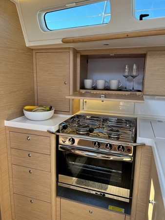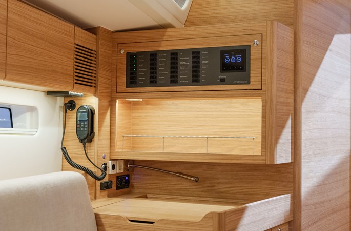 At the helm you have a nice and direct feel. With slight adjustment to the responsiveness of the rudder, that shares the now updated design of the entire X-Yachts Pure X range rudders, helming this yacht will be a fantastic experience for the owners.