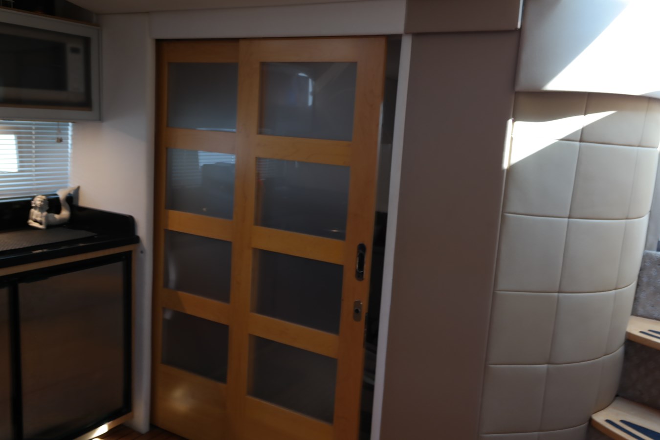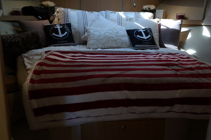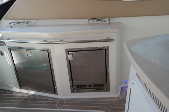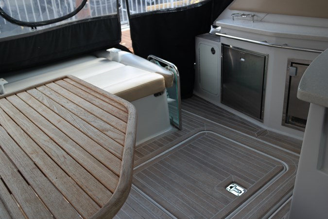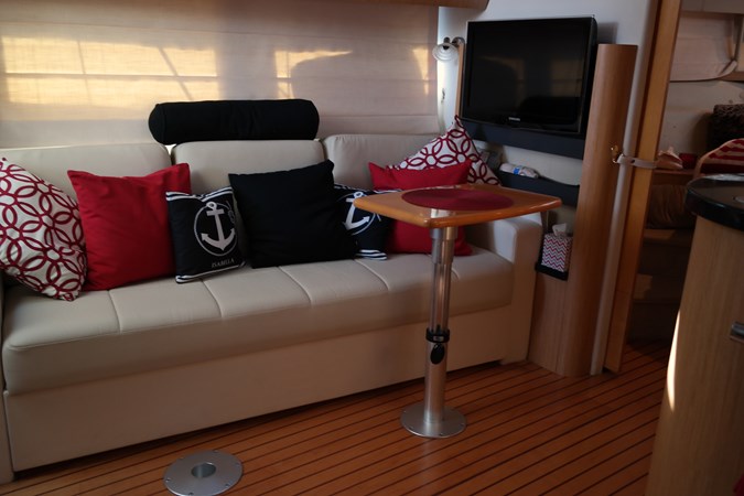 Well-appointed cabin cruiser with two heads and room to sleep six, voluminous cockpit with large sliding hard-top, wide side decks and large easy cockpit access forward. Cockpit designated air condition unit for your comfort. Luxurious teak cockpit table and teak flooring, tables and hydraulic teak platform for your tender. Transom Electric BBQ grill with electric sliding transom sunbed backrest and a large platform gives you more areas to entertain.