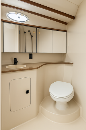 Inside, you’ll find one of the most thoughtfully designed layouts in her class. The salon is bright and inviting with wraparound seating, large windows, and a fully equipped galley. Below, two private staterooms and two heads with showers offer true overnight comfort for family or guests.