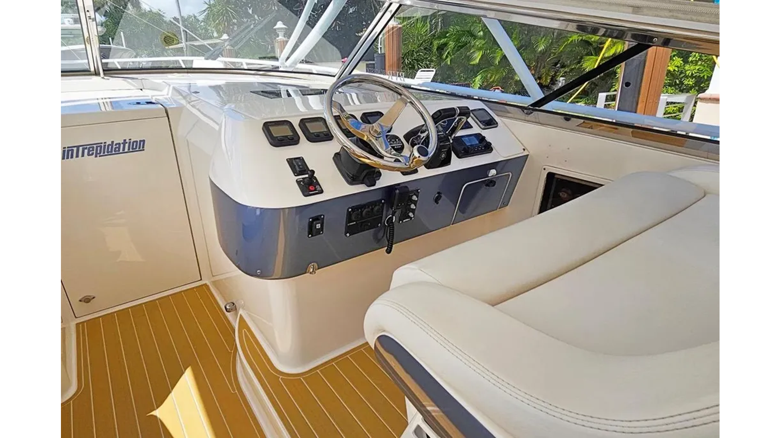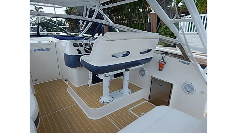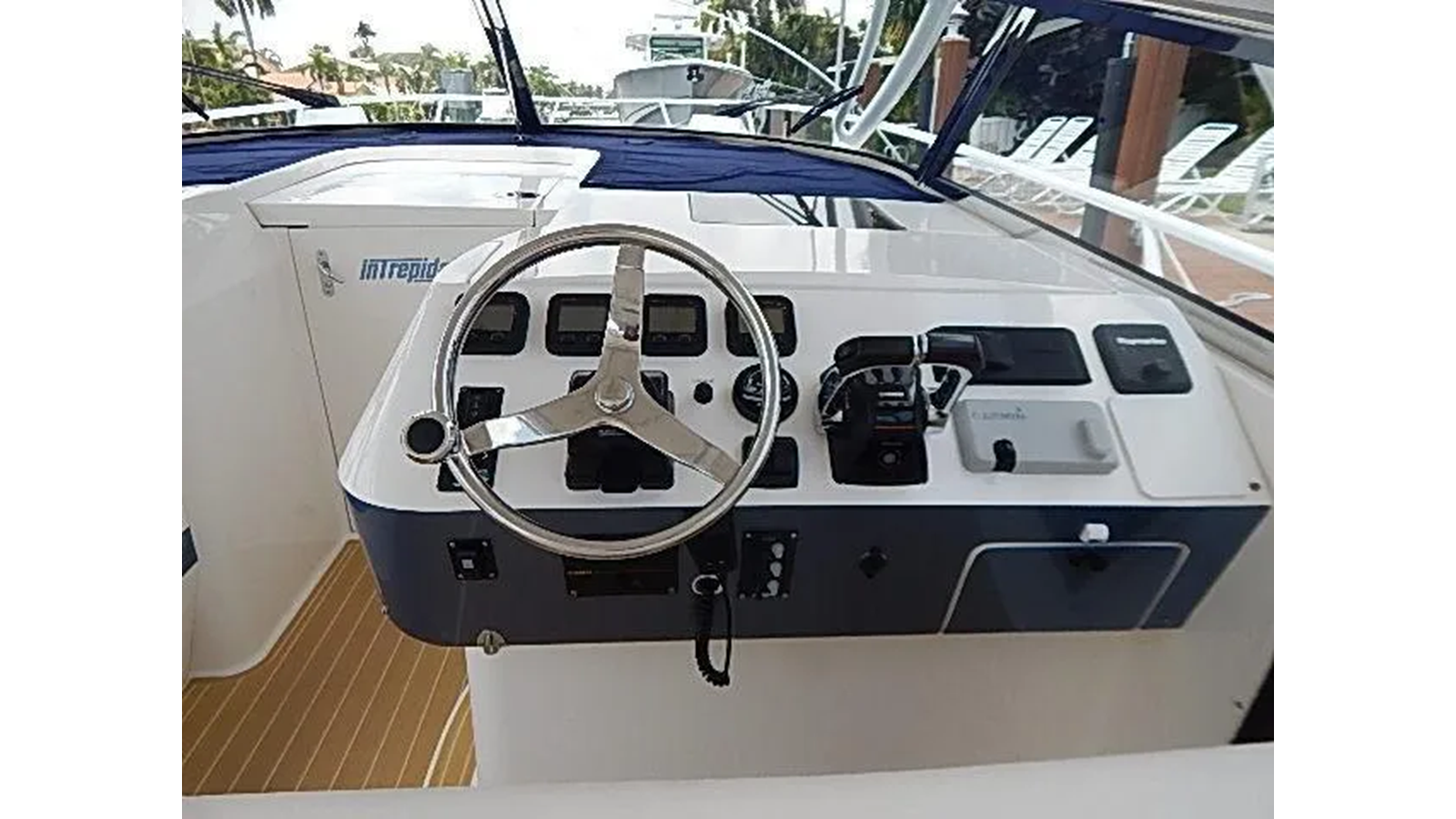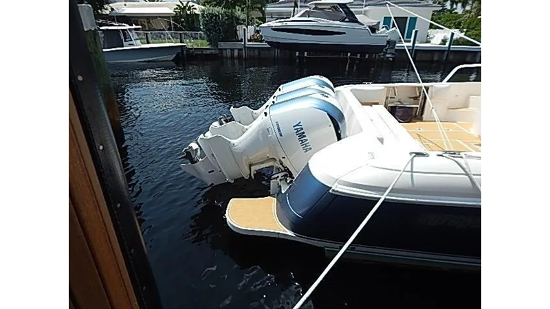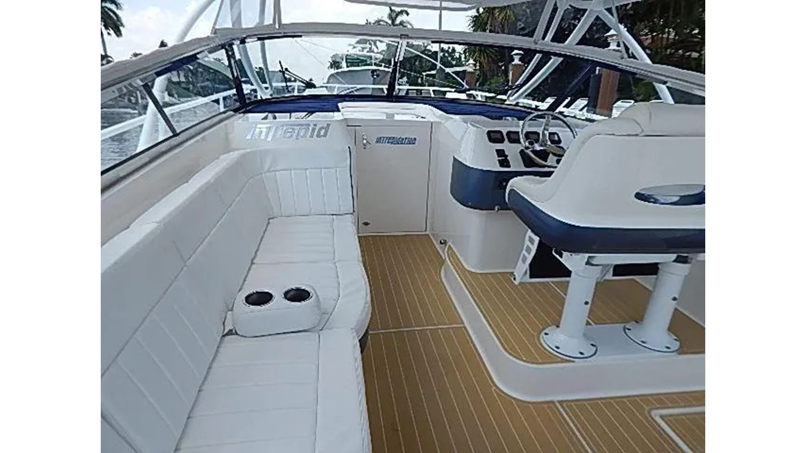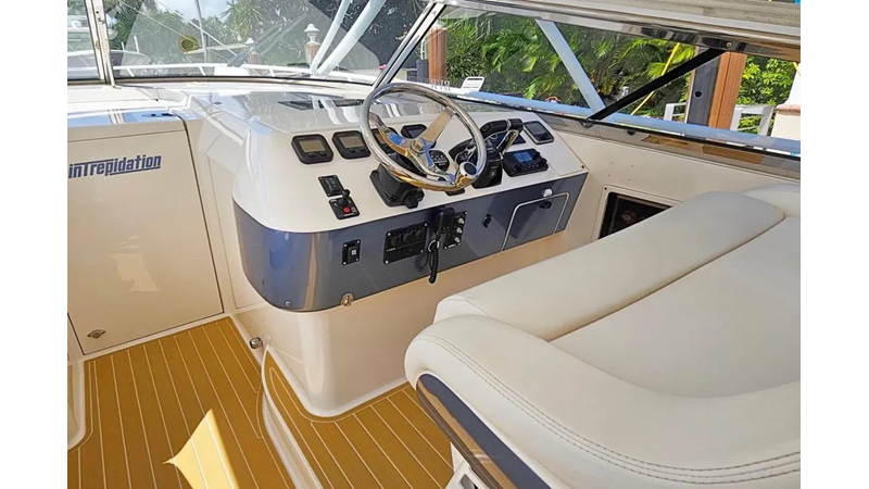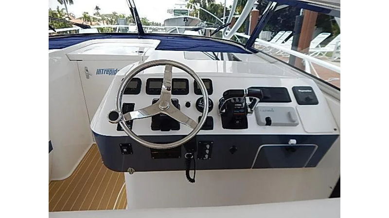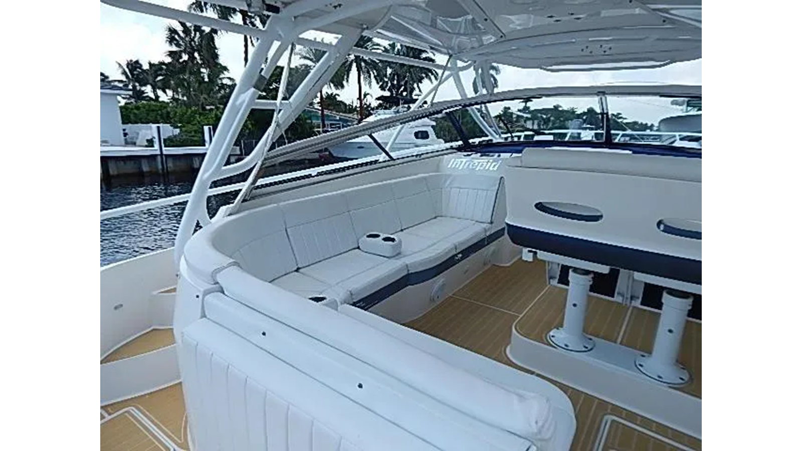 This 2009 Intrepid 430 is a multipurpose sport yacht with the sleek styling and luxury-class amenities of a custom boat. She provides a superbly smooth and stable ride. Some of her many features include: Dual Garmin electronics, radar, mapping, spot light ACR, bow thruster and more. Powered by triple Yamaha 350’s with 790 hours. Like many Intrepid boats, she is built on a fully cored stepped hull designed with speed in mind.
