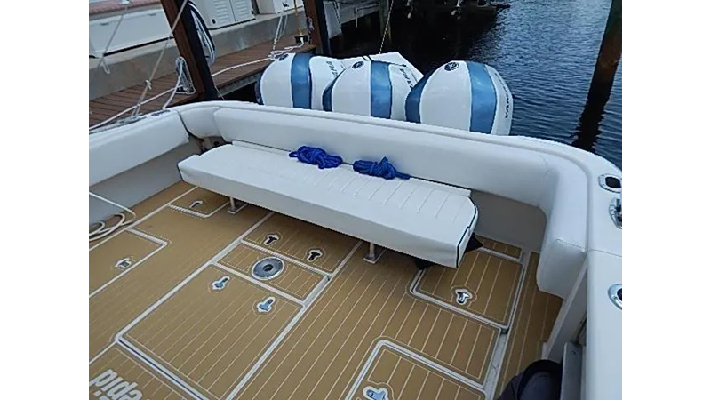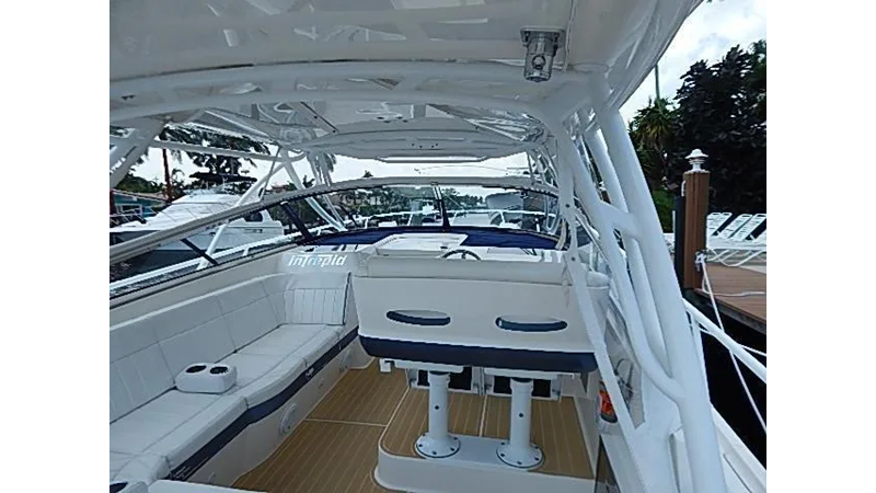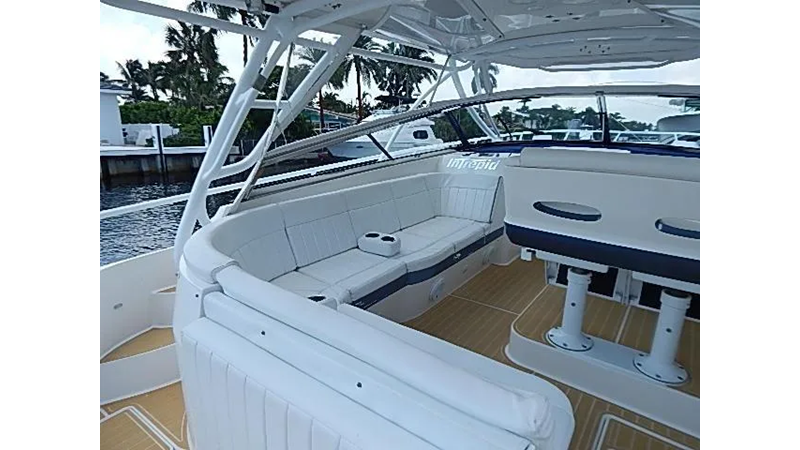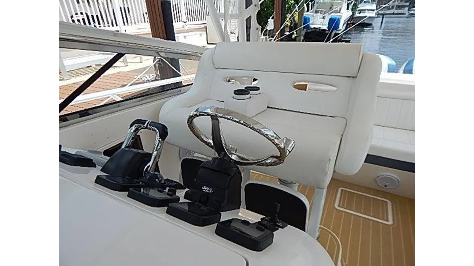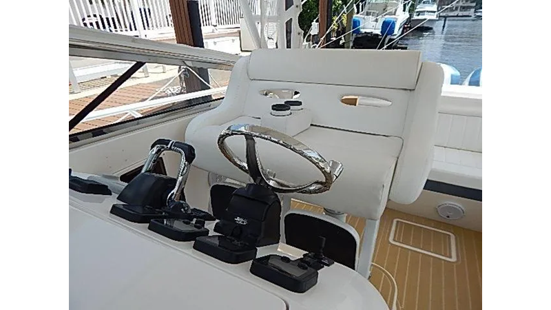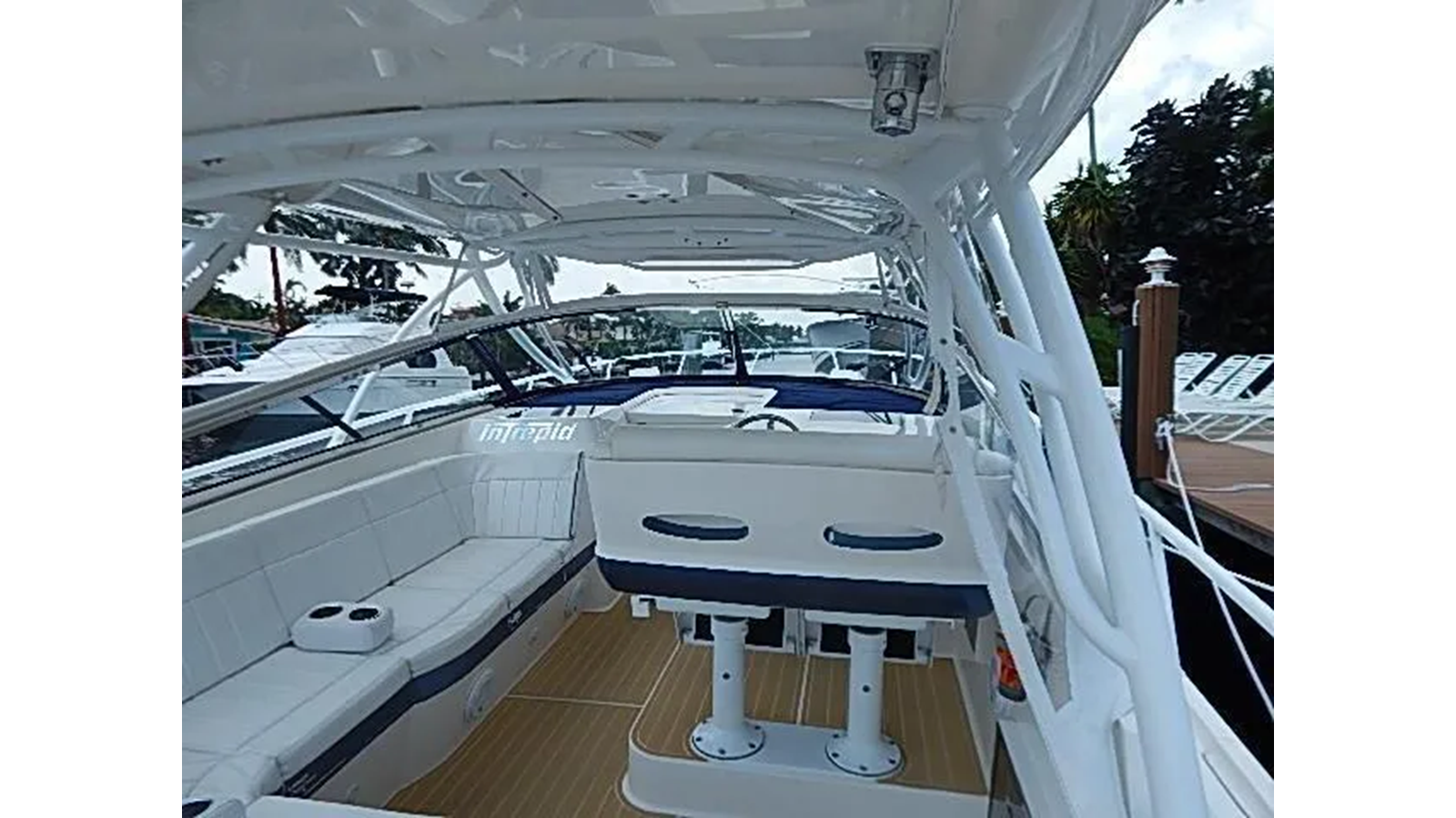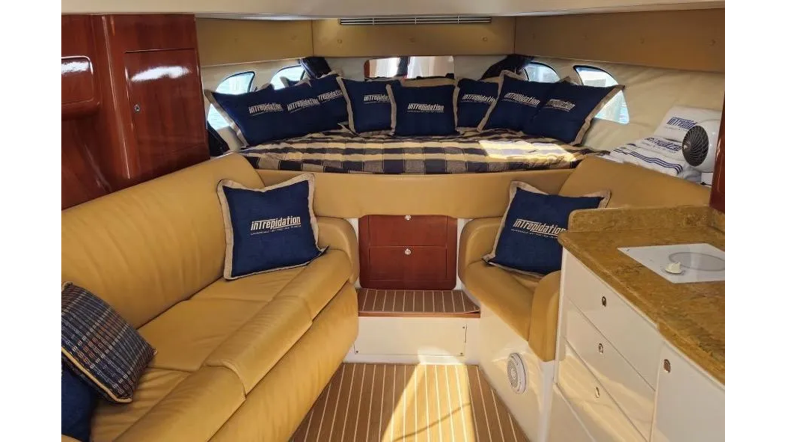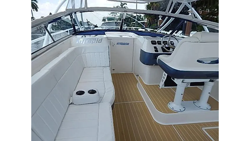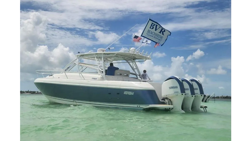 This 2009 Intrepid 430 is a multipurpose sport yacht with the sleek styling and luxury-class amenities of a custom boat. She provides a superbly smooth and stable ride. Some of her many features include: Dual Garmin electronics, radar, mapping, spot light ACR, bow thruster and more. Powered by triple Yamaha 350’s with 790 hours. Like many Intrepid boats, she is built on a fully cored stepped hull designed with speed in mind.