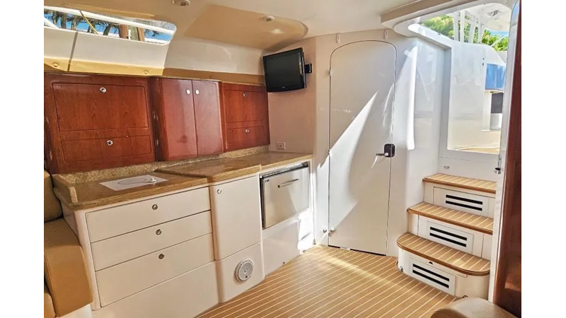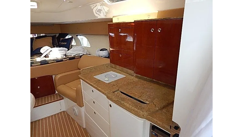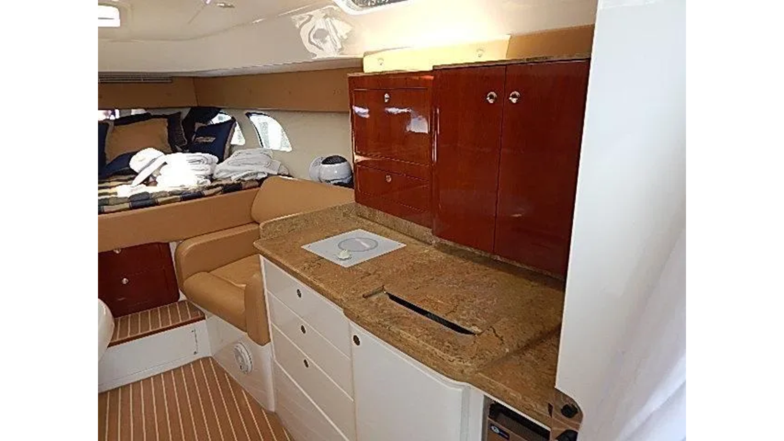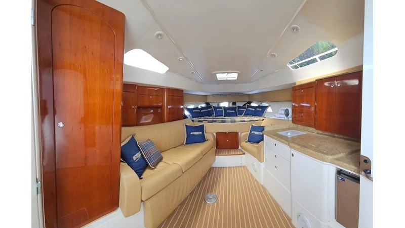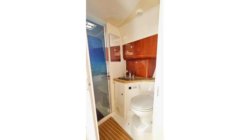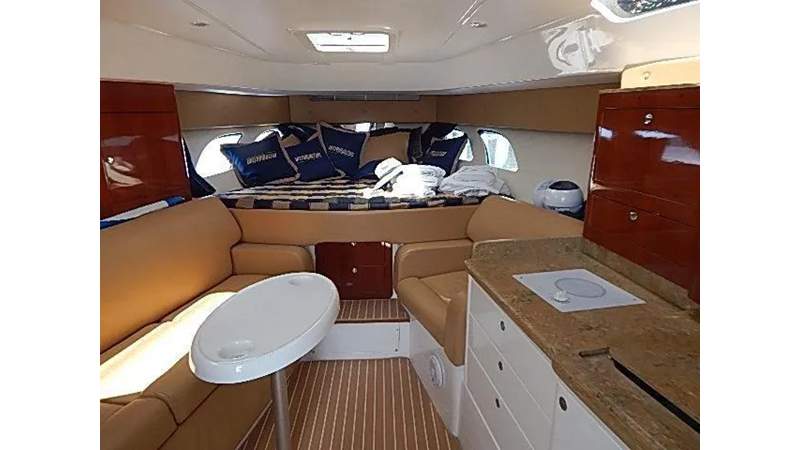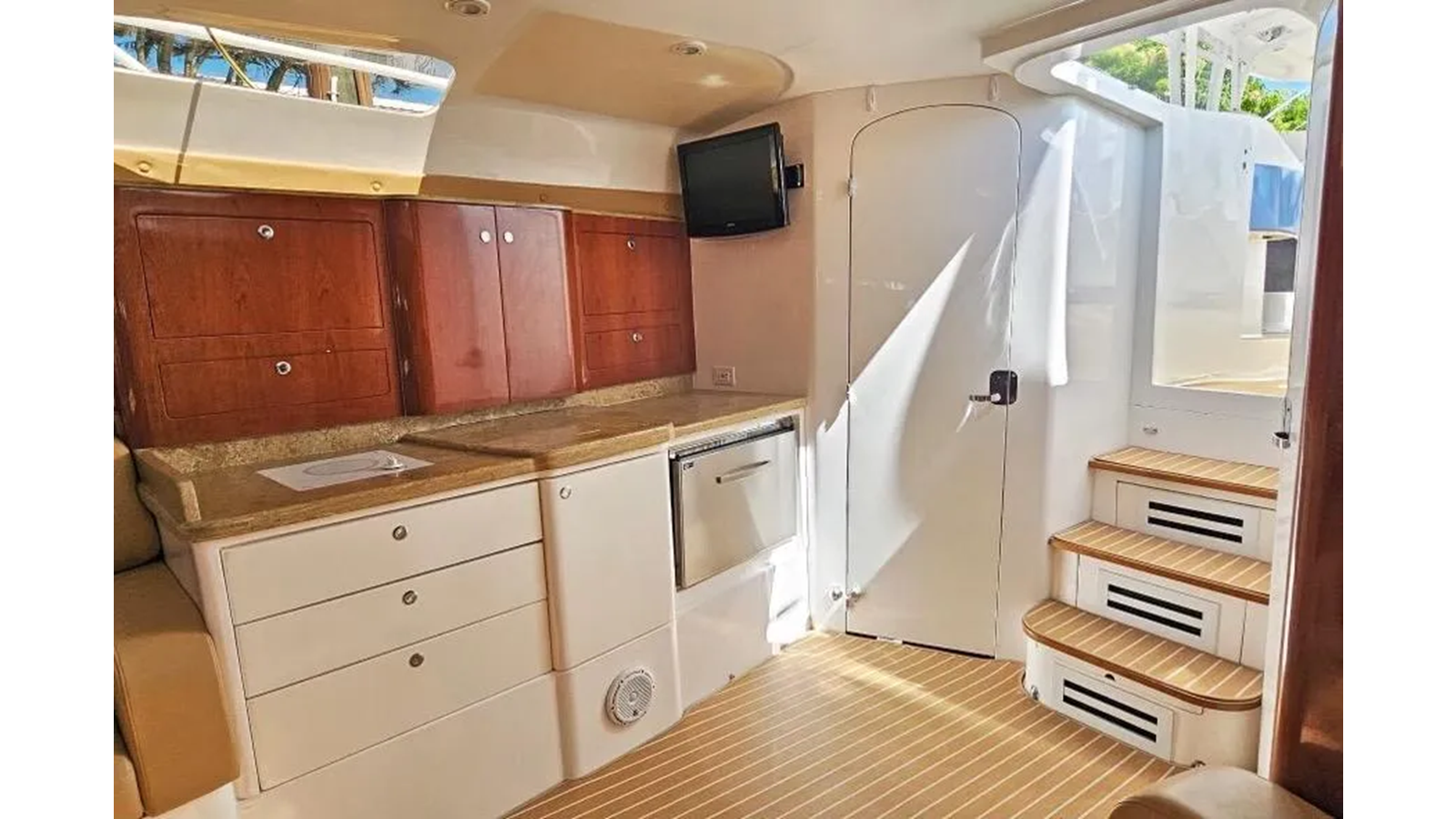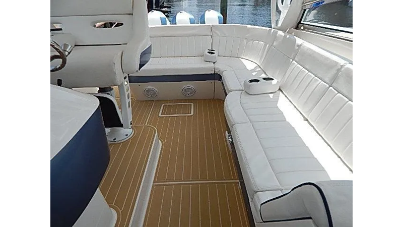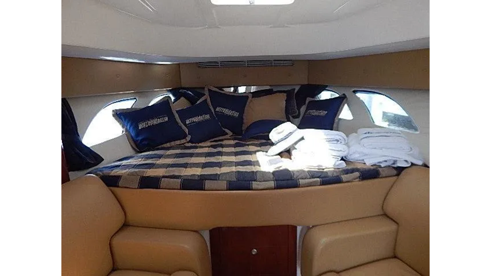 This 2009 Intrepid 430 is a multipurpose sport yacht with the sleek styling and luxury-class amenities of a custom boat. She provides a superbly smooth and stable ride. Some of her many features include: Dual Garmin electronics, radar, mapping, spot light ACR, bow thruster and more. Powered by triple Yamaha 350’s with 790 hours. Like many Intrepid boats, she is built on a fully cored stepped hull designed with speed in mind.