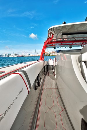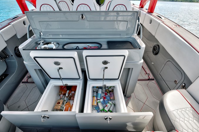 The 2023 Midnight Express 43 Open is engineered for serious offshore performance, delivering a rare blend of speed, stability, and luxury. Its advanced deep-V hull slices through chop with confidence, while optional quad or quint outboards provide exhilarating top-end power. A wide beam offers exceptional deck space with premium seating, full-beam storage, and a state-of-the-art helm outfitted with multifunction Garmin displays. From integrated LED lighting to precision-molded composites, every detail showcases high-performance craftsmanship. Whether you’re running to the sandbar or cruising offshore, the 43 Open delivers unmatched versatility, comfort, and control.