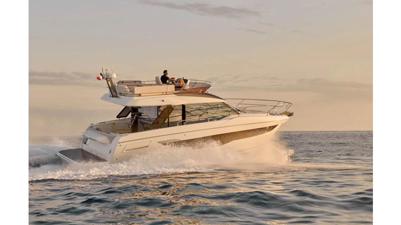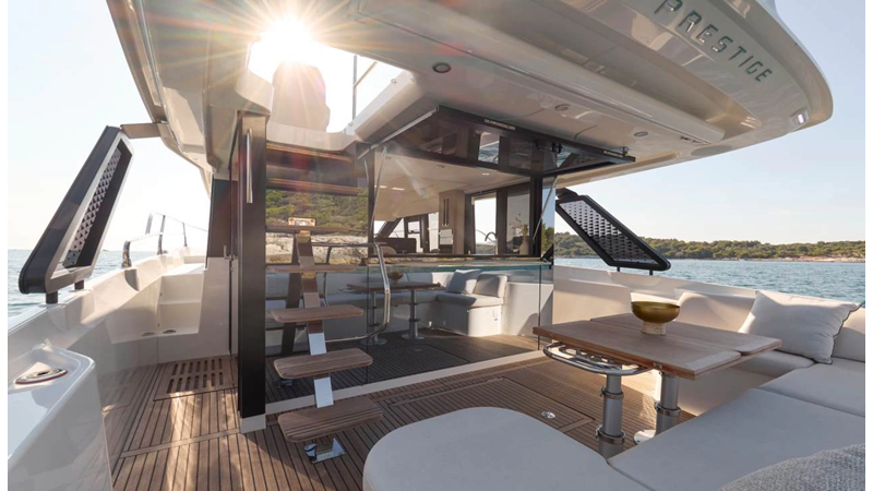 The Prestige F4.3 ushers you into the “Art de Vivre” of yachting in a new compact flybridge format. At about 43 feet (13.07 m) overall, this model offers generous space, refined style, and a luxury experience typically reserved for much larger yachts.