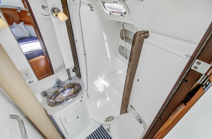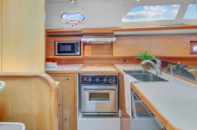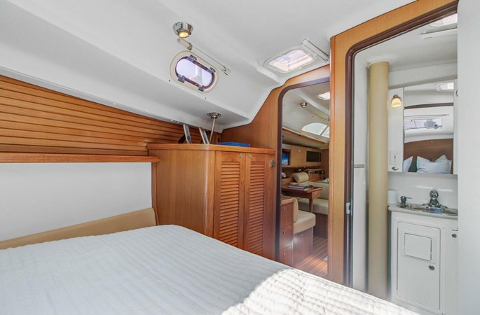 The Catalina 445 is the ideal all-around sailboat. It provides comfortable interior accommodations, including three cabins, two heads, a spacious salon, a nav station, and a galley. The large cockpit features a folding table, twin helms, and excellent access to the sugar scoop transom. It’s easy to sail, with all control lines led aft to electric winches, as well as a furling mainsail and headsail. Its ICW-friendly air draft and shallow draft (shoal draft version) are perfect for East Coast cruisers.