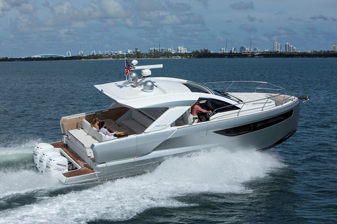 The 2025 Jeanneau DB 43 redefines the premium day boat experience with its striking design, powerful performance, and luxurious accommodations. Crafted by Camillo Garroni and Michael Peters, this 44-foot vessel boasts a sleek, contemporary profile and a hull designed for exceptional handling and seakeeping. Equipped with triple 350-hp Mercury outboard engines, ensuring both thrilling adventures and smooth cruising. On deck, the DB 43 features a spacious cockpit with modular seating, a fully equipped galley, and dual side terraces that fold down to create a “Beach Club” atmosphere, perfect for entertaining or enjoying the water. Below deck, the interior offers two luxurious cabins with an en-suite head, high-end finishes, and ample natural light, providing comfort for extended stays. With advanced technology like joystick docking, a bow thruster, and the SEANAPPS system for remote monitoring, the DB 43 combines style, performance, and innovation for discerning boaters.