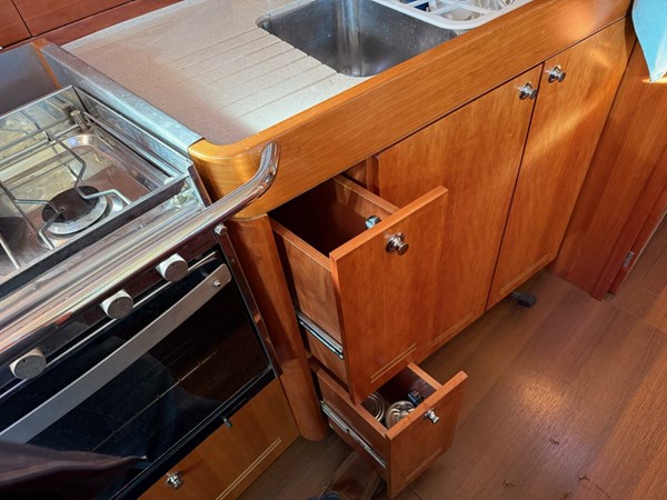 The Allures 45 is renowned for her centerboard design — giving you deep-draft performance under sail and shoal-draft freedom at anchor. Her aluminum hull offers unmatched strength and security offshore, while the GRP deck and cabin keep her cool, quiet, and easy to maintain.