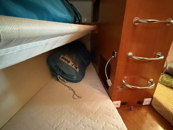 EVERMORE is hull No. 9 of this model and has three staterooms and a single head with separate shower stall.