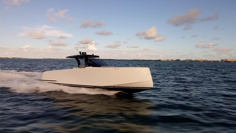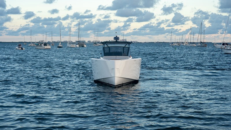 Hull: Vinylester resin infusion, foam sandwich construction, carbon reinforcement — built for strength, stability and quiet operation.
