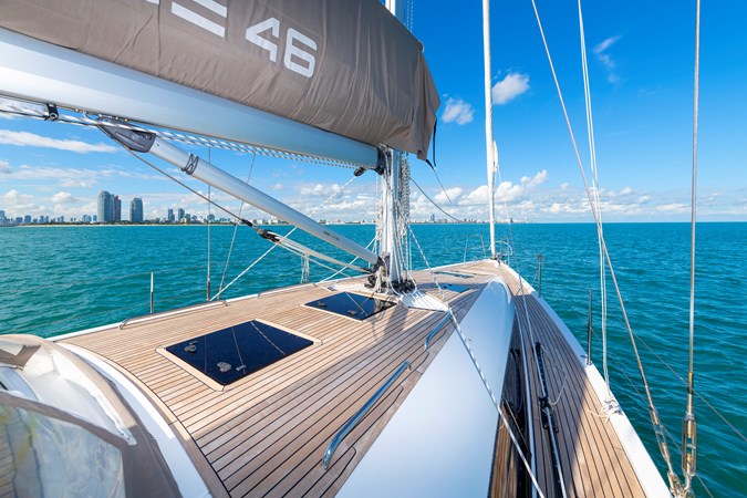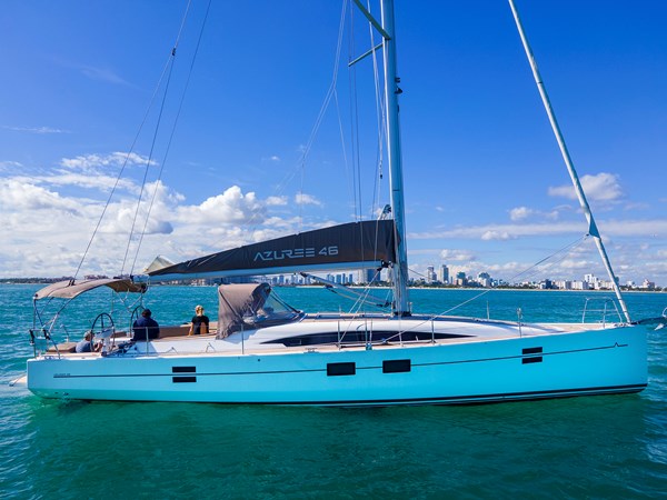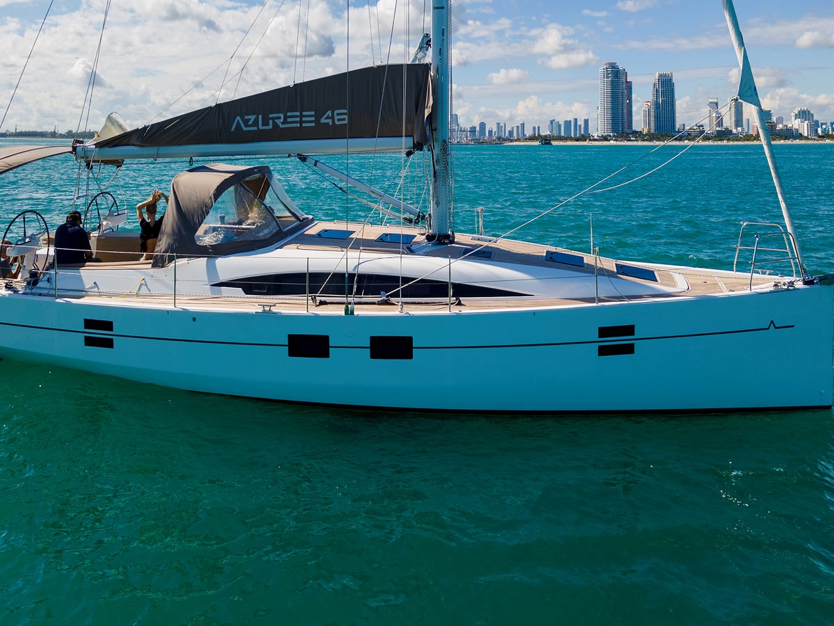 The 2020 Azuree 46, built by Sirena Yachts and designed by Humphreys Yacht Design, perfectly balances high-performance sailing with luxurious cruising. This well-maintained, ready-to-sail yacht features a spacious 3-cabin layout and a wide beam for exceptional interior volume. Engineered for easy shorthanded sailing and thrilling performance, she boasts a versatile cockpit and a fold-down swim platform. Whether you are looking for competitive racing potential or comfortable family getaways, this Azuree 46 delivers on all fronts.