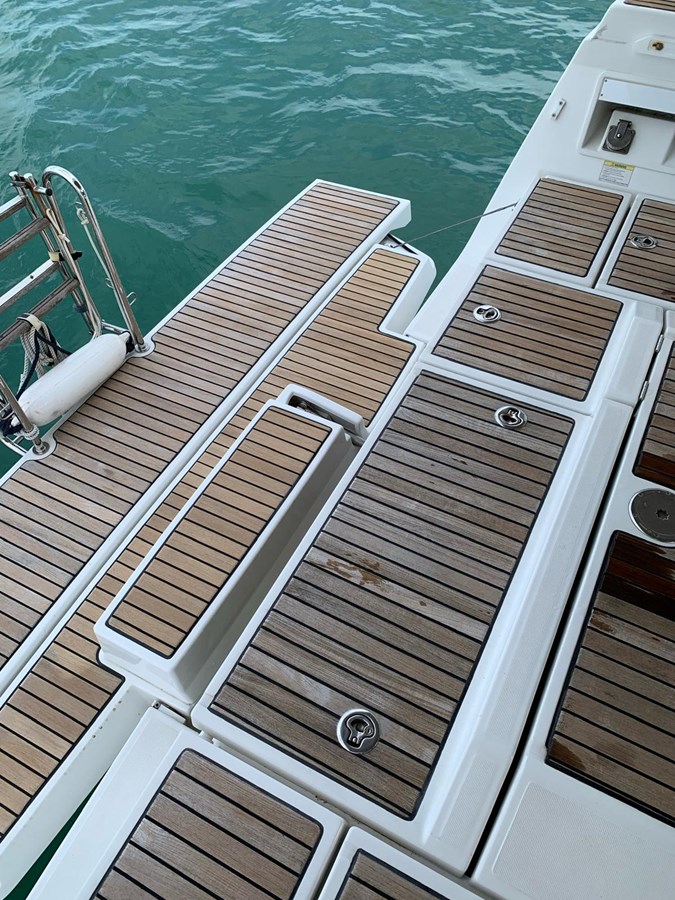 Designed by Finot Conq, the Oceanis 45 features a stable and efficient hull, delivering smooth and confident sailing in a wide range of conditions. The spacious, well aid-out cockpit with twin helm stations provides excellent visibility and precise control, while the large swim platform enhances onboard living and water access.