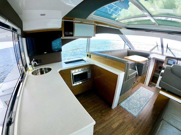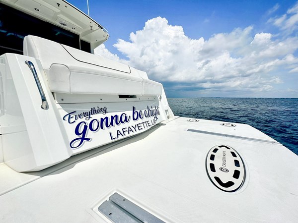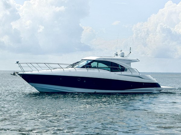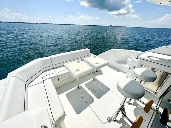 Low hour twin Volvo D6 IPS 435 hp engines (@ 400 hours) with Joystick docking, Garmin Electronics Suite, (2) 12-inch color screen Navigational/HD Radar/sounder units, plus 9″ Garmin screen dedicated to engine data. Hydraulic swim/dinghy platform, SureShade power cockpit shade (new in 2024). Cockpit grill, sink, refrigerator, Ice Maker, (2) removable Barstools, Aft glass wall opens for direct access into the Galley, making this a great boat for entertaining family and friends. Huge power sunroof, upgraded sound system, Flat Screen HDTV with SAT and Over-air Digital TV antennas. 2 stateroom / 2 head layout. Excellent visibility from the salon/galley/helm with huge windows and a fully Heated/air-conditioned interior.