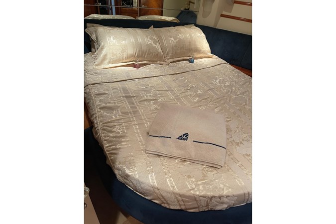“Offshore Flyer” is a very clean and well maintained Azimut 46, combining a timelessly modern Italian design with timeless Euro styling and lines. On deck, she features a large flybridge with beautifully curved seating. The cockpit has an engine room access hatch and there’s a large lazarette locker for storage. The stern provides a substantial swim platform with dingy chocks and is accessed via the two entrances from the cockpit. There is also a hydraulic passerelle for ease and safety of boarding while stern tying.