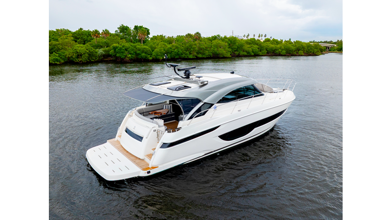 The new 46 Sports Motor Yacht offers a wide, open cockpit designed for water sports action. Three entertaining and dining options. An aft gourmet galley and spacious saloon.