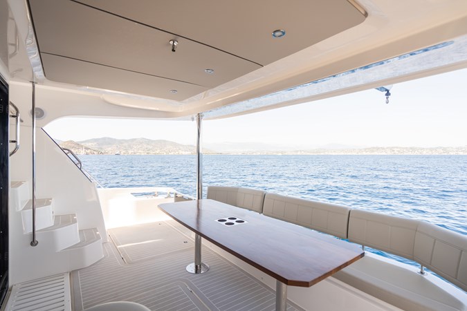 La disposition intérieure est entièrement personnalisable, avec plusieurs configurations disponibles offrant 3, 4 ou 5 cabines, toutes avec salles de bains attenantes. La configuration standard comprend une suite propriétaire pleine largeur, lumineuse et privée, ainsi que des cabines invités bien aménagées, idéales pour des croisières prolongées ou des opérations de charter haut de gamme.
