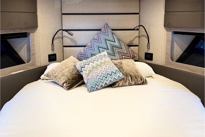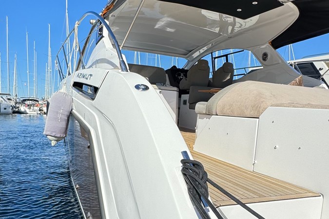 The Yacht package includes: Seakeeper NG6 stabilization system, Skyhook dynamic stabilization system, painted hull and hardtop in Urbino Land Met color, full teak finishing, Oceanled underwater lamps, Garmin Platinum advanced navigation package, various interior solutions and barely used Suzukino Geniuss 250 Open in the garage.