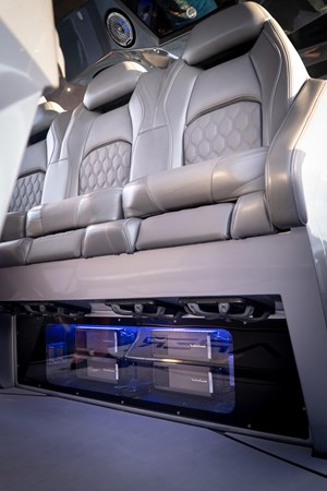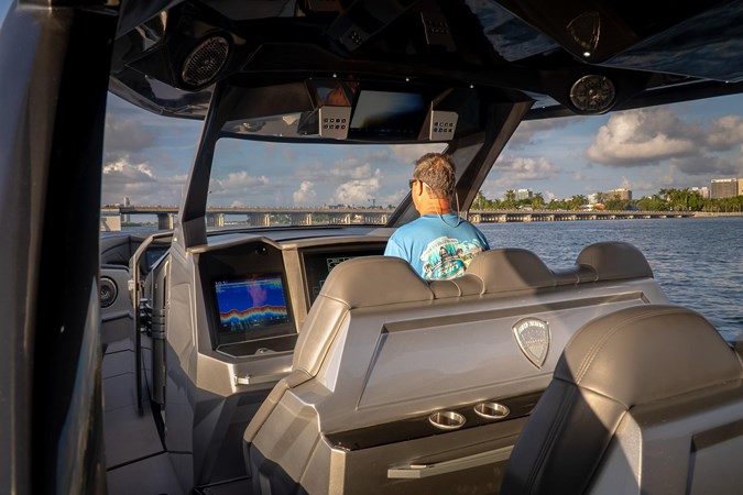 Stepping aboard the Adrenaline 47 Reaper, you are greeted by a meticulously crafted cockpit, designed to enhance the adrenaline-fueled journey. The ergonomically designed seats provide excellent support during high-speed maneuvers, while the state-of-the-art control panel offers intuitive navigation and access to vital boat systems.