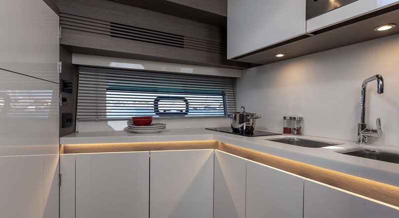 Inside, the GT 45 boasts a refined and spacious layout, including an owner’s suite with en-suite bath, a VIP cabin with flexible berths, and a stylish saloon that can convert into a third cabin. The Air Step® hull and powerful Volvo inboard engines ensure exhilarating performance and smooth handling.