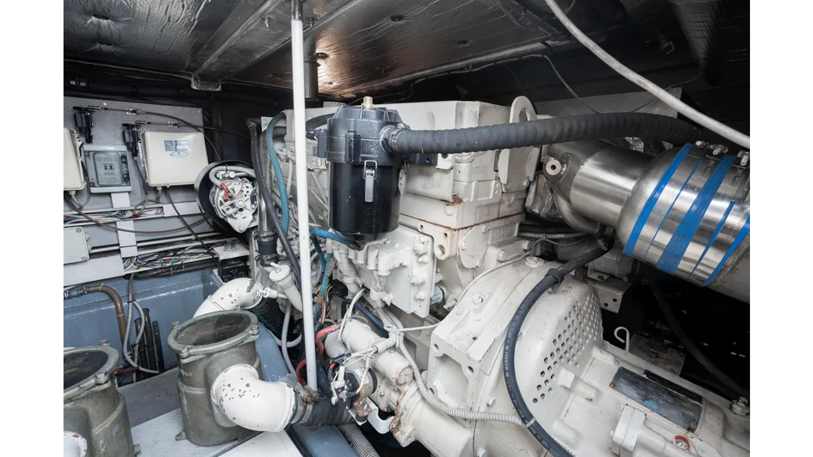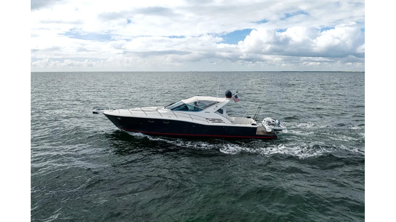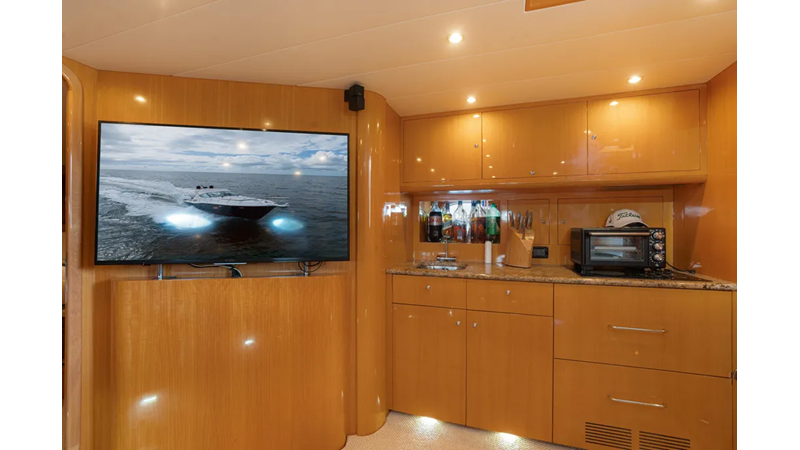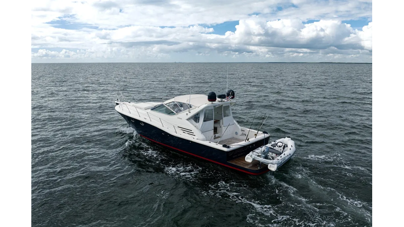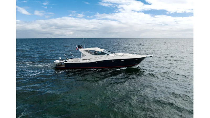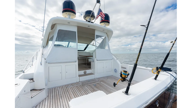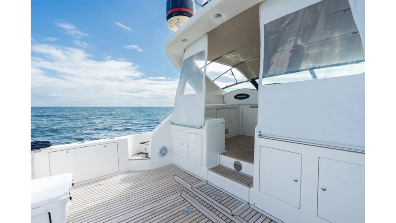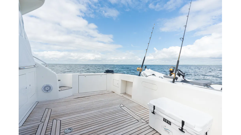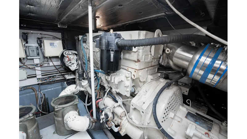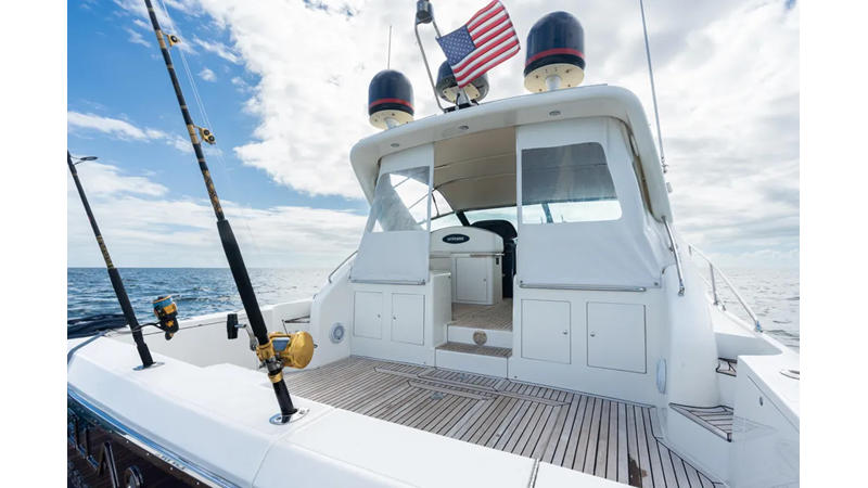 This boat features upgraded electronics and Cummins QSM 11 engines with less than 400 hours, turn key and ready to go on its next adventure!