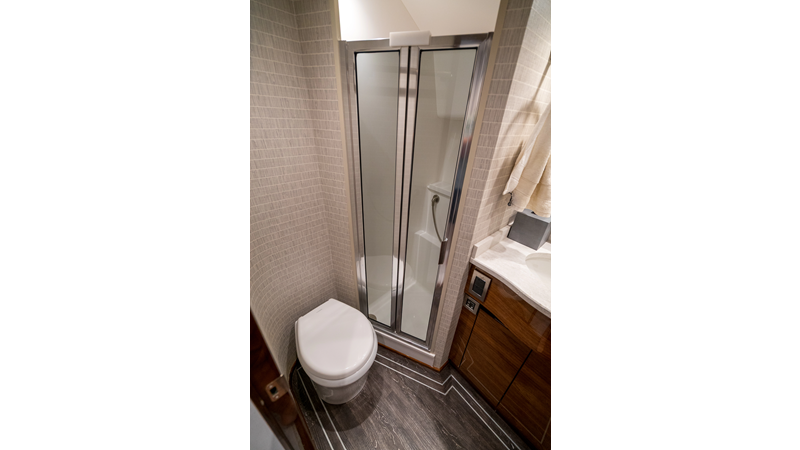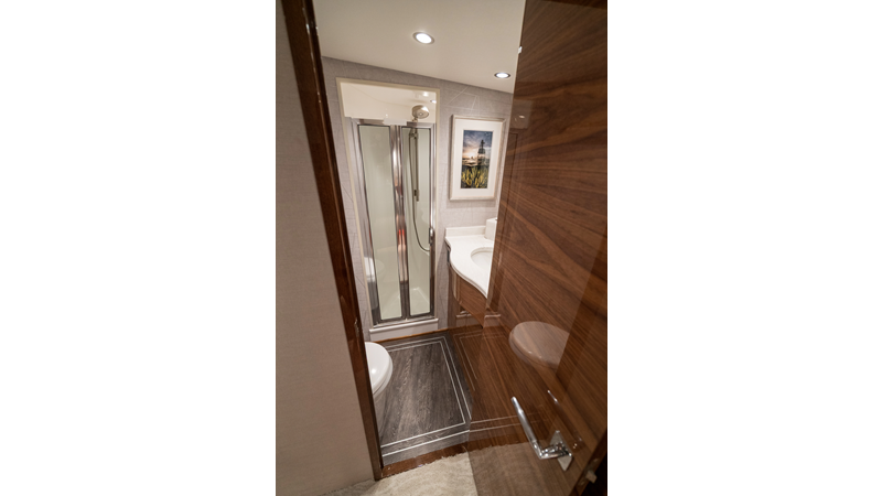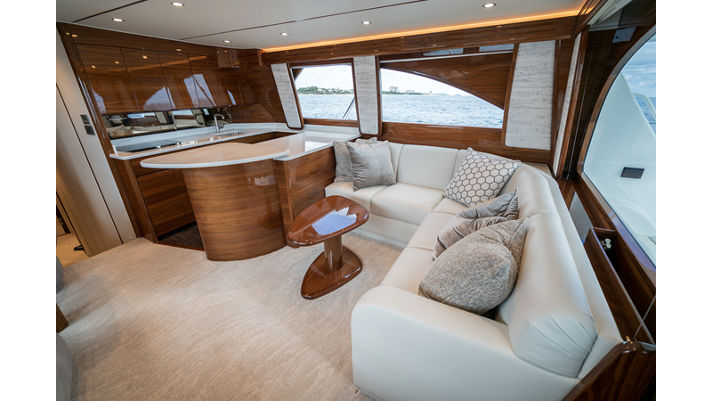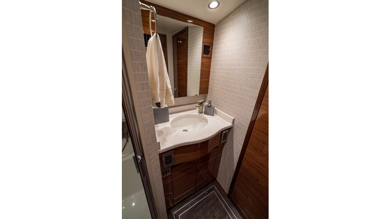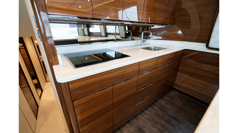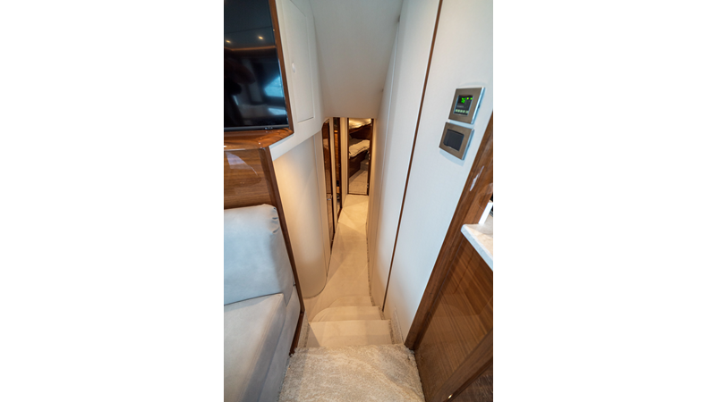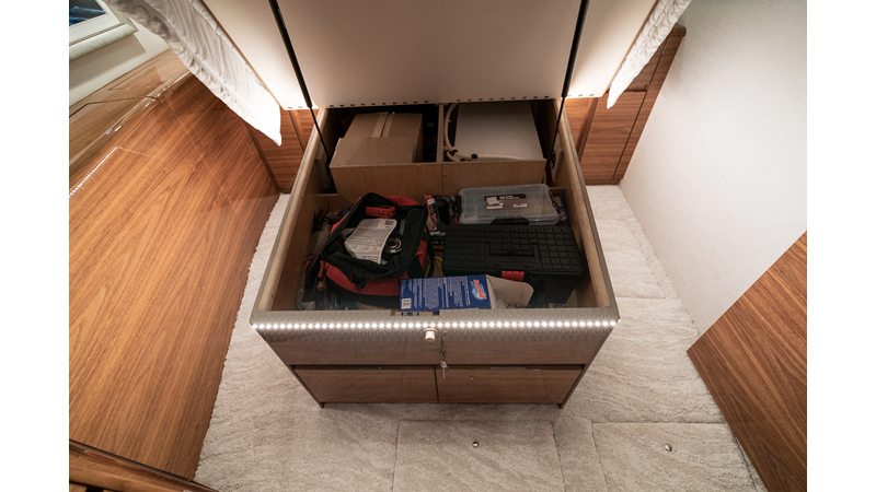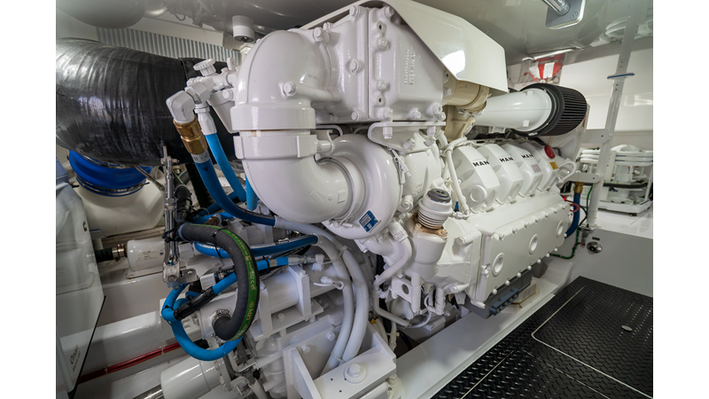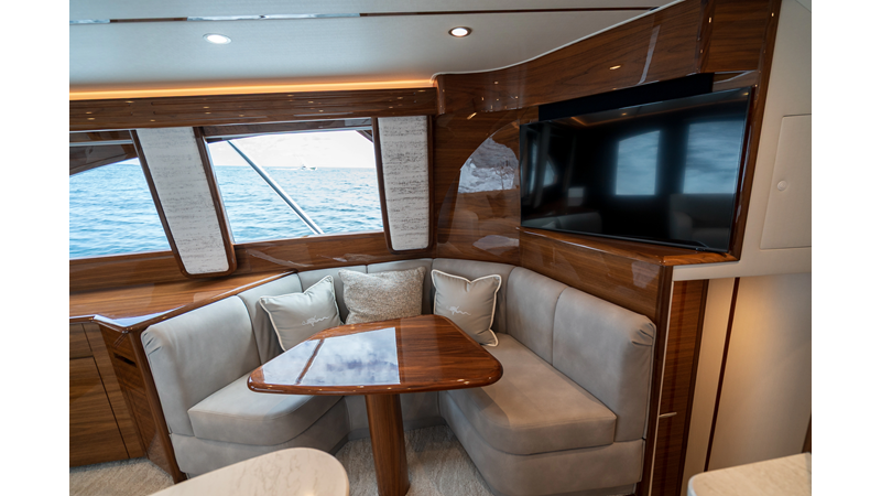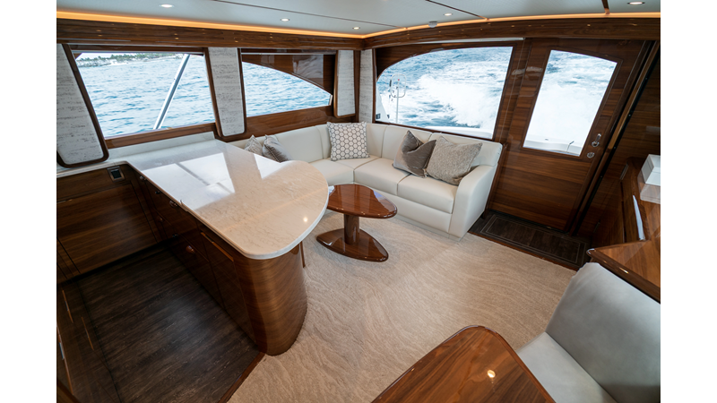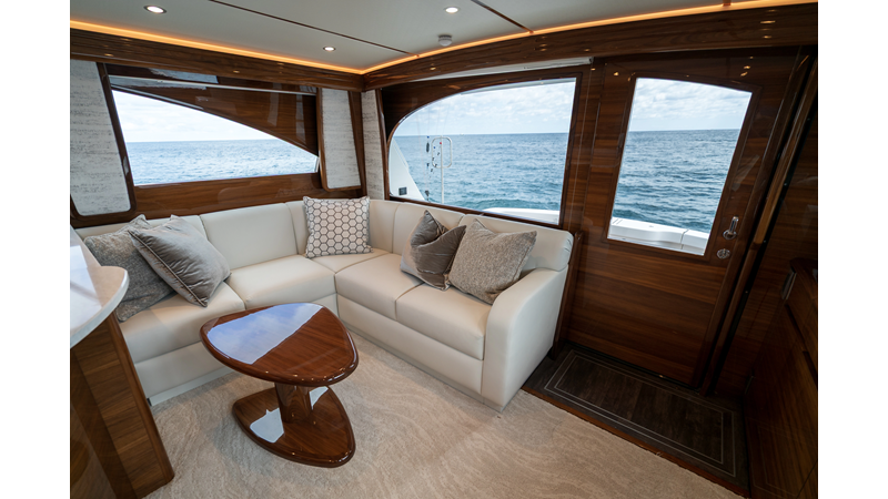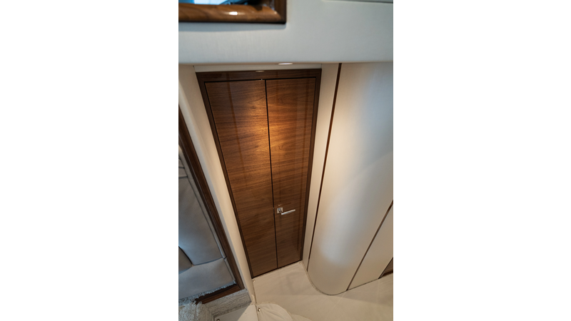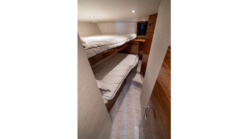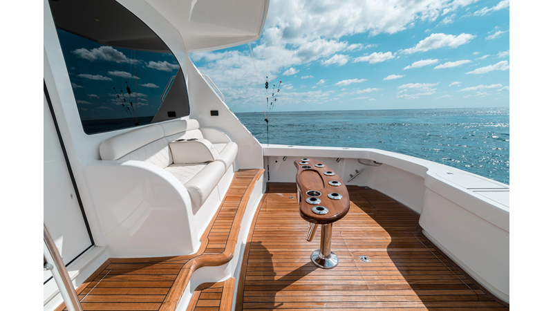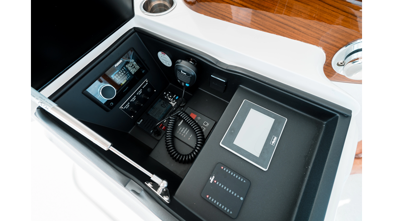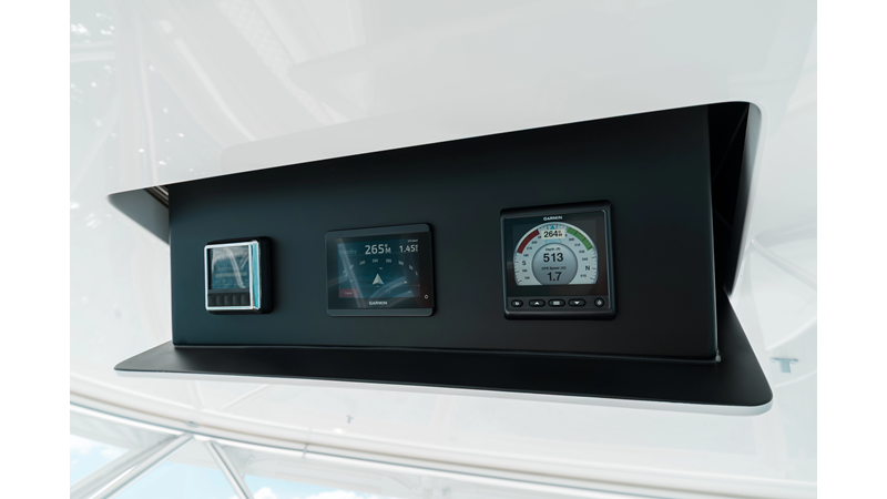 The model packs a lot in a very manageable size with a 3/2 layout, air conditioned flybridge, and great features for longer runs to fish the islands or canyons like a SeaRecovery Aquamatic Water Maker and Eskimo ice chipper.
