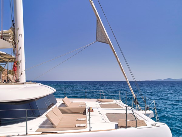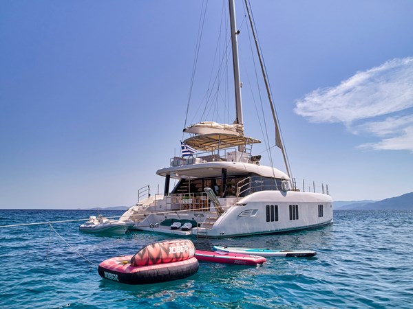 Outdoors, you’ll find inviting spaces for relaxation, dining, and sunbathing—ideal for every mood and moment. Whether you’re unwinding with a drink on deck or enjoying an alfresco meal beneath the stars, every detail is designed to elevate your experience. For those who crave adventure, the yacht comes fully equipped with kayaks, Seabobs, snorkeling gear, and more. With its elegant style, state-of-the-art amenities, and dedicated professional crew, this Sunreef 50 redefines luxury sailing.