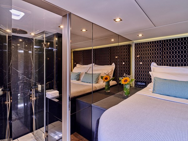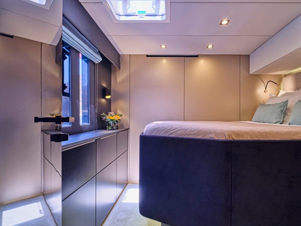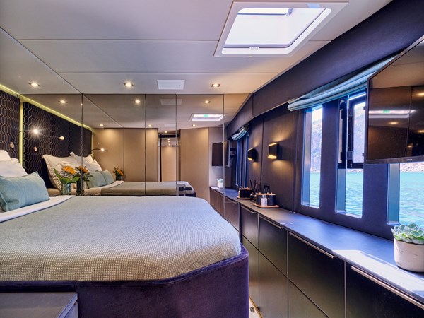 S/C ADARA blends refined design with world-class performance, offering the perfect setting to explore the world’s most breathtaking waters in style. Stretching 50 feet in length, this Sunreef 50 showcases 5-star accommodations crafted for discerning travelers. Each spacious cabin includes an ensuite bathroom, while the modern interior features sophisticated décor, premium entertainment systems, and expansive windows framing panoramic ocean views.