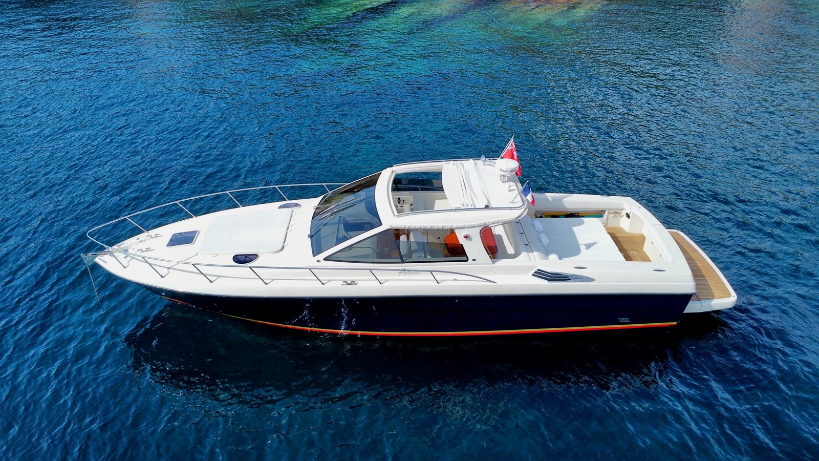 Superb 2011 Asterie 50 T-Top, first owner, in immaculate condition. This iconic model from the Asterie shipyard captivates with its timeless lines and sporty look, combining elegance, performance, and quality construction. Always maintained with the utmost care by a professional crew throughout the year, it has been stored in a hangar during the winter, ensuring that the hull, equipment, and finishes are in exemplary condition.