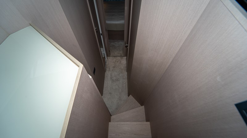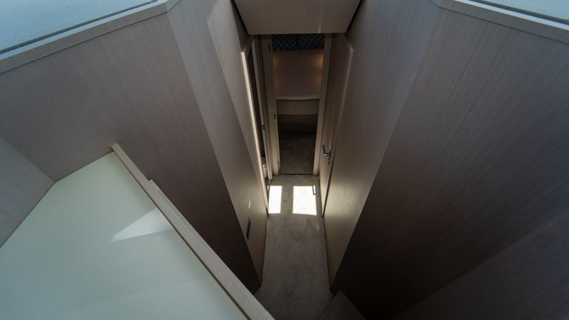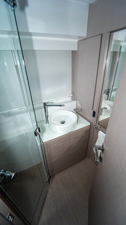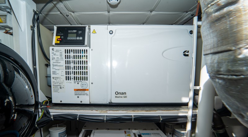 The yacht features four well appointed cabins and three heads , providing comfort for everyone on board. The Cummins Zeus manoeuvring joystick system makes docking effortless. Additional highlights include a hot freshwater system , Seakeeper , Cummins generator with low hours , all batteries (service, engines, and generator) replaced 6 months ago, and a recent engine service completed just a week ago .