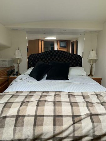 Inside, the accommodations are equally impressive. A bunk room offers space for crew or guests, while the forward V‑berth suite and master suite provide comfort after long days on the water. The layout is designed to balance fishing utility with livability, making extended trips offshore both productive and enjoyable.