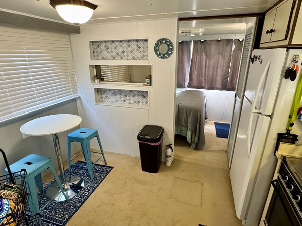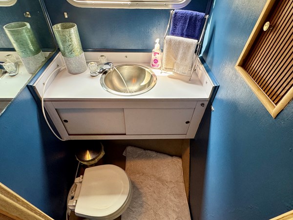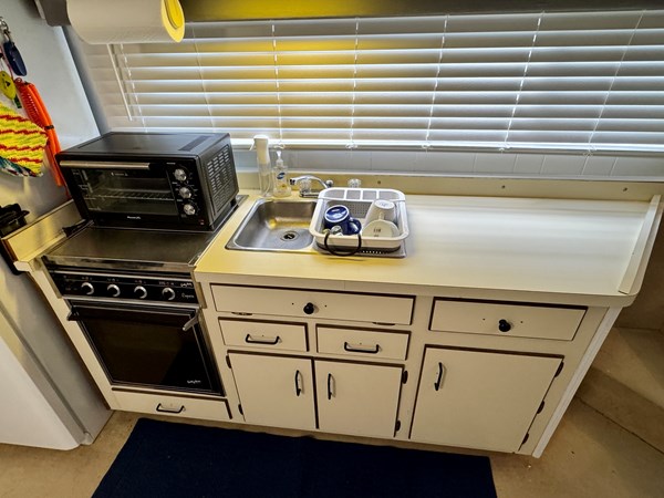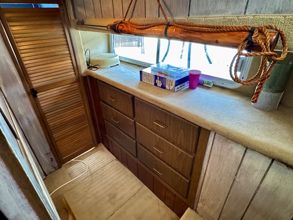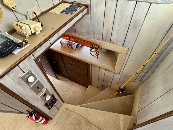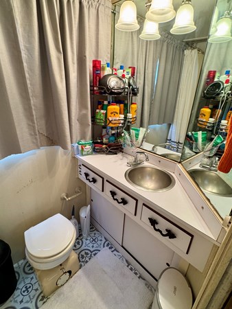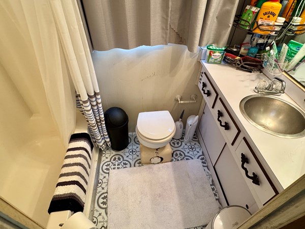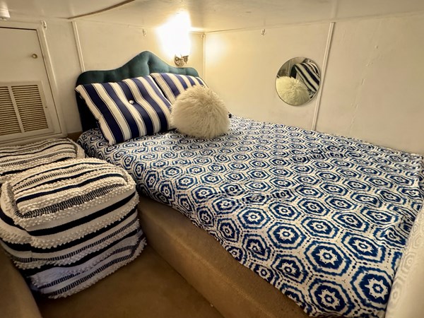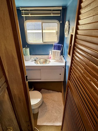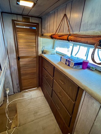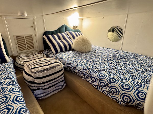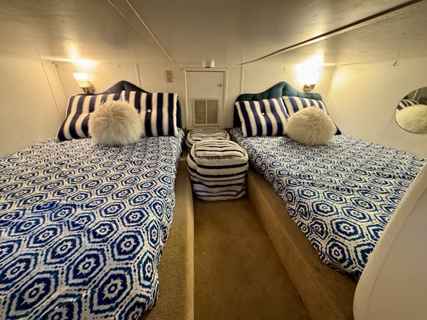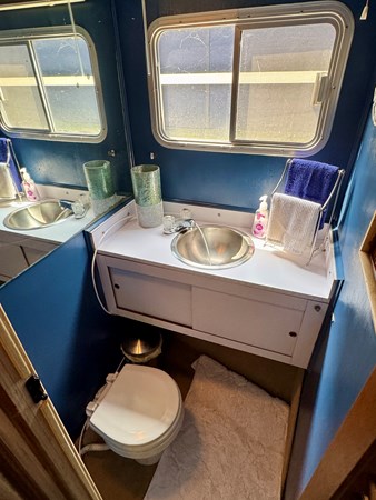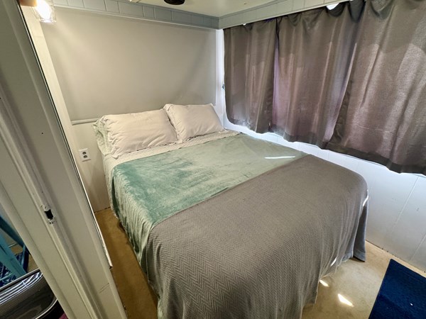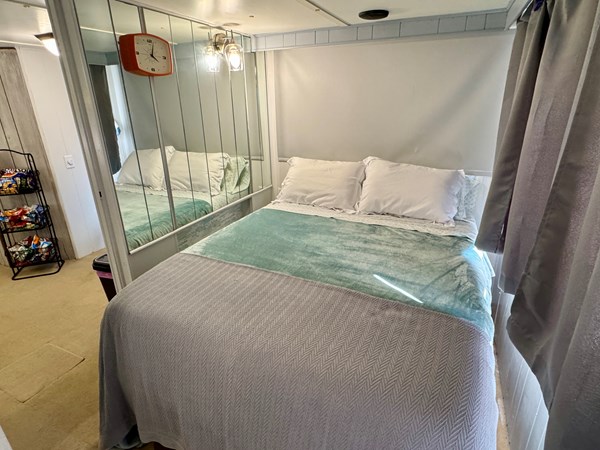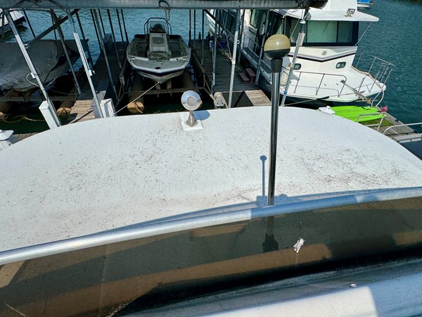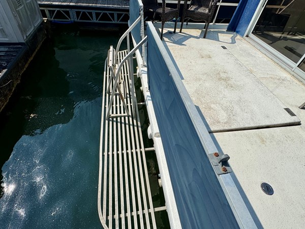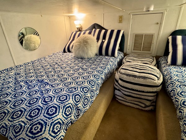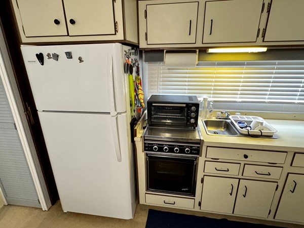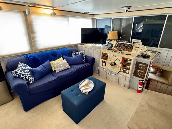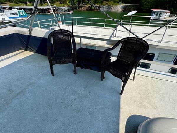 This 1987 Gibson 14 x 50 Standard Houseboat For Sale on Norris Lake Tennessee is equipped with twin counter-rotating 5.7L Crusader 350CID V8 Inboard V-Drive engines and an 8KW Westerbeke generator and features 2 staterooms with a queen master stateroom, double beds in a cuddy, a sleeper sofa, and 2 heads – one is a full bath with a shower/tub.