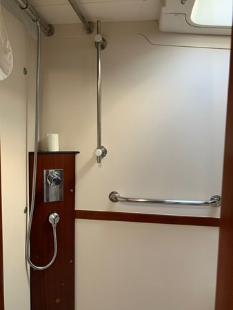 Dedicated skipper cabin in the forepeak with toilet, sink, and new mattress