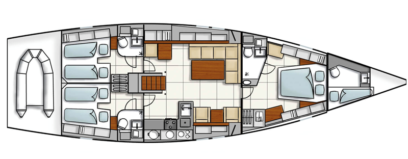 3 guest cabins, including spacious bow master cabin