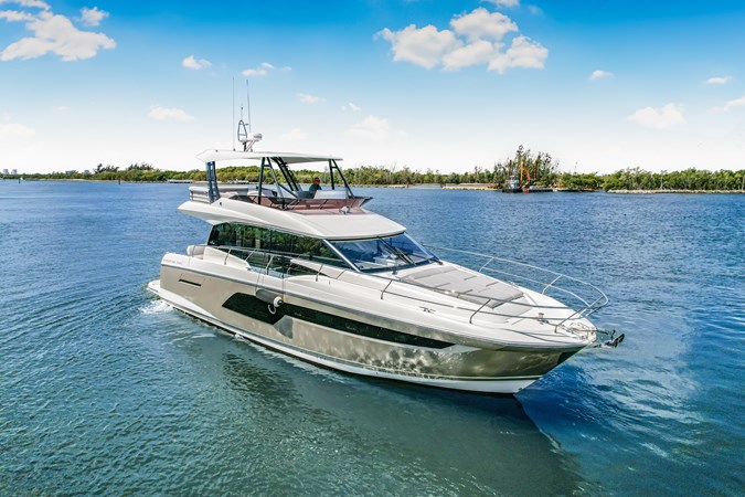 The 2024 Prestige 520 Flybridge is a 52-foot luxury motor yacht that seamlessly blends performance, elegance, and comfort. Designed for both entertaining and relaxation, it features a spacious flybridge with lounge seating, a sunpad, and an optional wet bar. The interior boasts an open-plan salon with panoramic windows, a fully equipped aft galley, and a modular cockpit bench that pivots to face the salon, enhancing social interaction. Accommodation includes a full-beam master suite, a forward VIP cabin, and an optional third cabin or crew quarters. Powered by twin Volvo Penta IPS 650 w/Joystick engines (2 x 480 HP). With its combination of luxury, performance, and thoughtful design, the 2024 Prestige 520 Flybridge is an exceptional choice for discerning yacht enthusiasts.