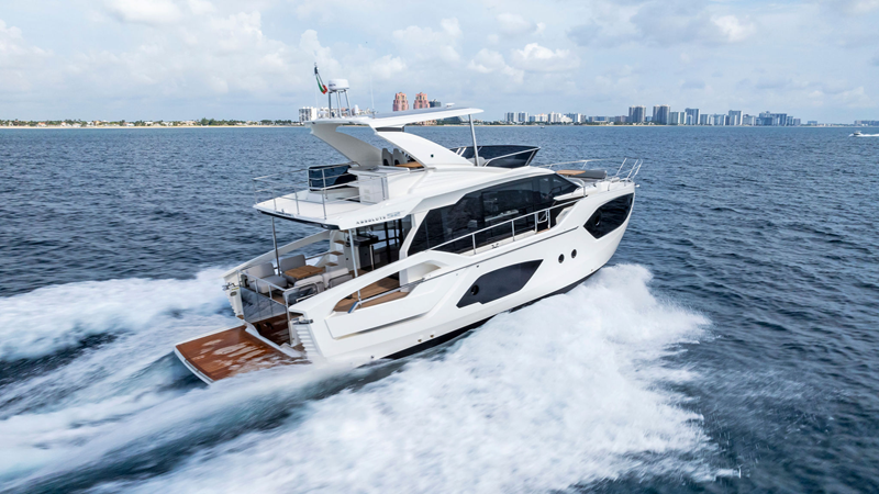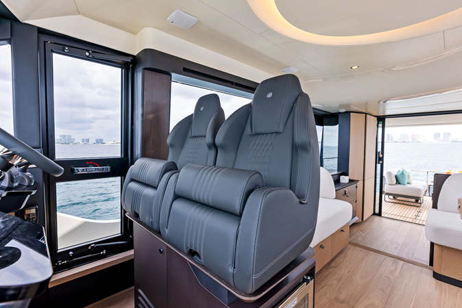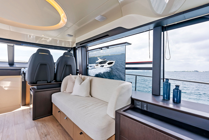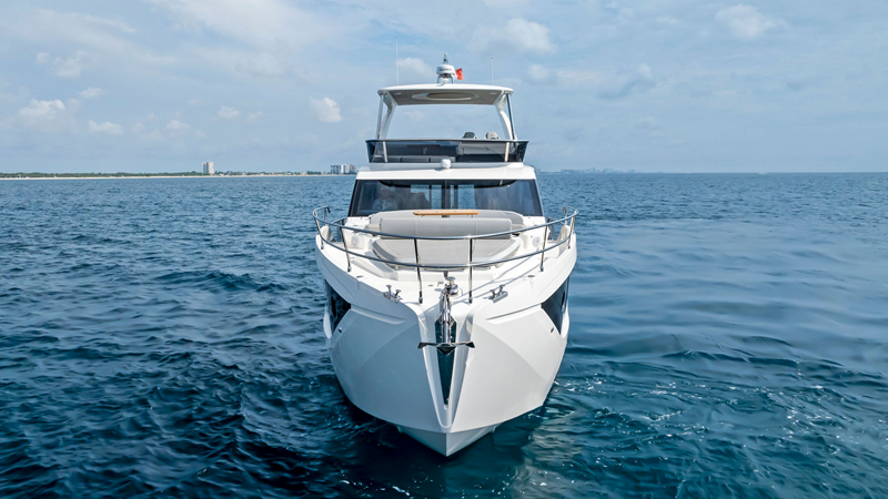 Powered by twin Volvo Penta IPS engines, the 52 FLY delivers smooth handling, efficient performance, and easy maneuverability, making it ideal for both new and experienced owners navigating U.S. waters.