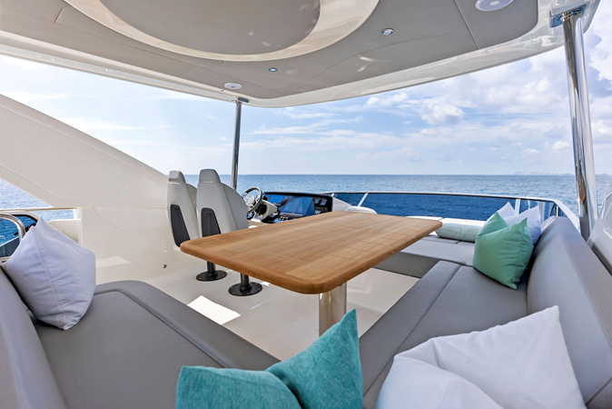The Absolute 52 FLY stands out for its modern Italian styling, impressive volume, and smart use of space across every deck. The open cockpit terrace, spacious flybridge, and forward lounge create multiple areas for relaxing or entertaining, all connected by wide walkways and excellent visibility.
