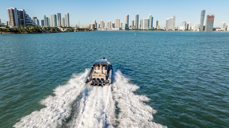 This Chaser 500R is also very well suited for use as a superyacht tender. It can take people on board even in rougher seas, and the Orca Hypalon rubber tubes mean that it simply bounces off other boats. In addition, the Chaser 500R can easily sail through shallow 3ft water to drop passengers off at a beach club, for instance. It also serves as a perfect supply boat for superyachts as it is simple to tow and remains stable. The long 600 mile range, thanks to its 700 gallon tank, means that the Chaser 500R can easily follow after a superyacht too, or go on long trips without the need to refuel.