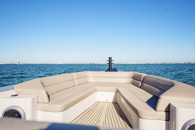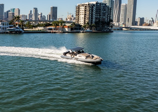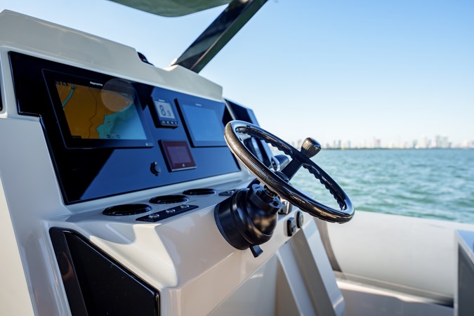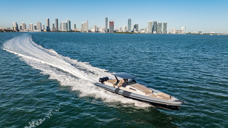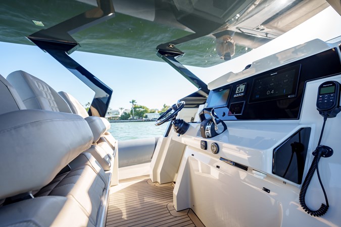 Safety is guaranteed even when children are on board thanks to the thoughtful layout design and walkaround. And the well-equipped galley, spacious seating area around the dining table, and lounge area on the foredeck mean that the only ingredient missing for a true alfresco feast is the right people. She can be yours now. This Chaser 500R is available for viewings in Miami Beach, Florida.