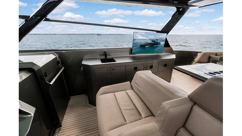 Upgraded bigger engine package IPS 950 Bottom paint and engine service completed (2/10/26) Seakeeper 6 Gyro Hardtop with skyroof Flir night vision Volvo DPS Skyhook Panda Diesel generator Full size berth in cabin 21 speakers 7 fridges Double ac units HD Ultrasonic antifouling