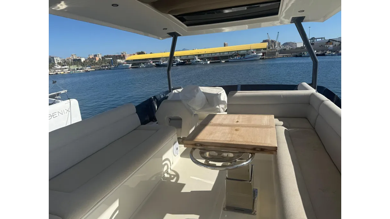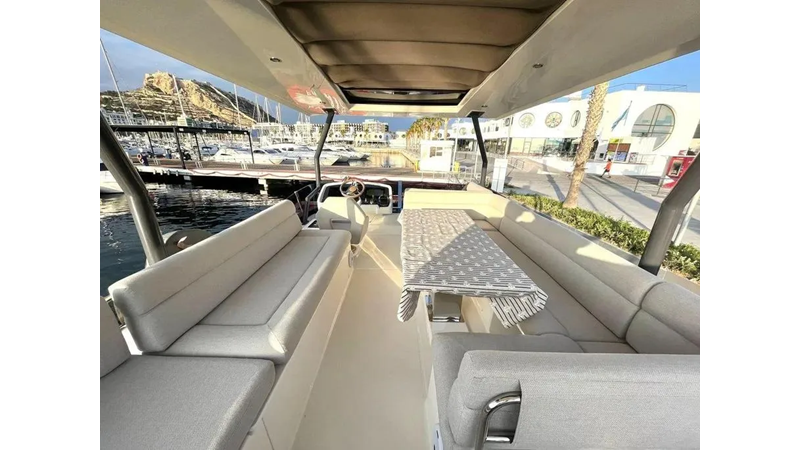 Currently located in Alicante, Spain, and offered VAT not paid, this yacht is equipped with top-tier options including a hydraulic swim platform, electric flybridge hardtop, generator, and air conditioning.