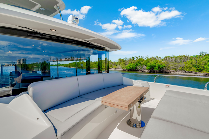 One of the main strengths of the Navetta 53 is its extraordinary livability: spacious areas and large windows offer an immersive marine view, while the carefully designed layout ensures ease of movement, with minimal steps, high ceilings, and space-saving sliding doors. The cockpit terrace is a versatile and spacious area, ideal for hosting guests from dawn to dusk. This space can be customized with modular furnishings, providing the freedom to adapt the environment to your needs. The glass aft parapet offers spectacular views, while the illuminated pathways at the bow enhance safety and ambiance. The flybridge, equipped with a command post and comfortable sofas, offers breathtaking views and an enriched sailing experience with a range of comforts, perfect for relaxing dinners and unforgettable moments.