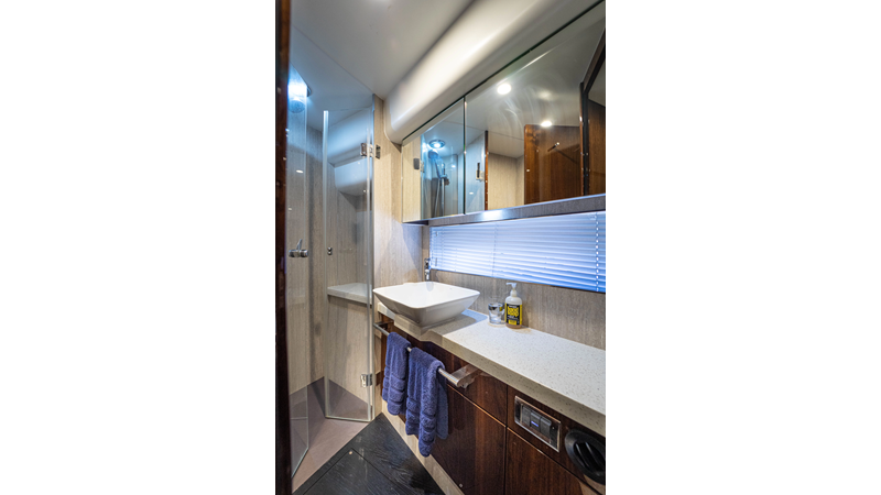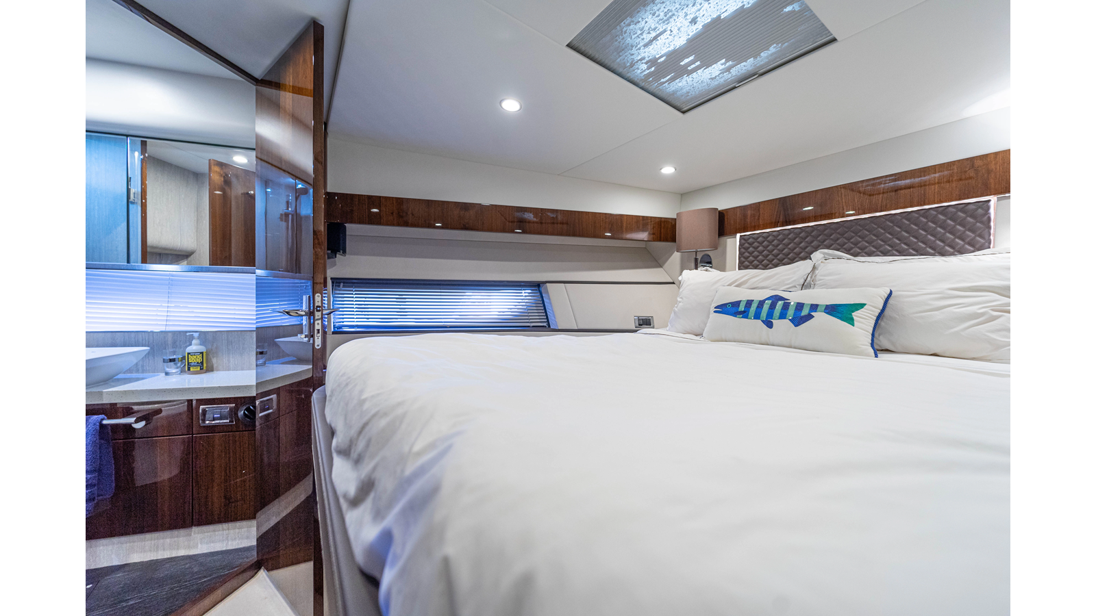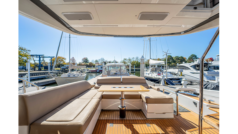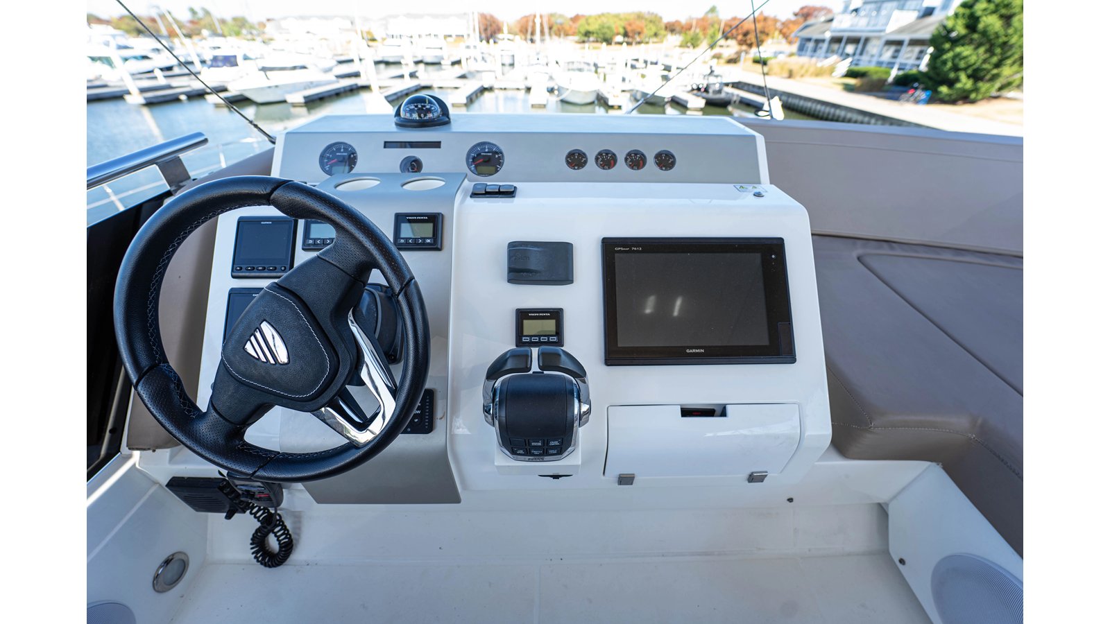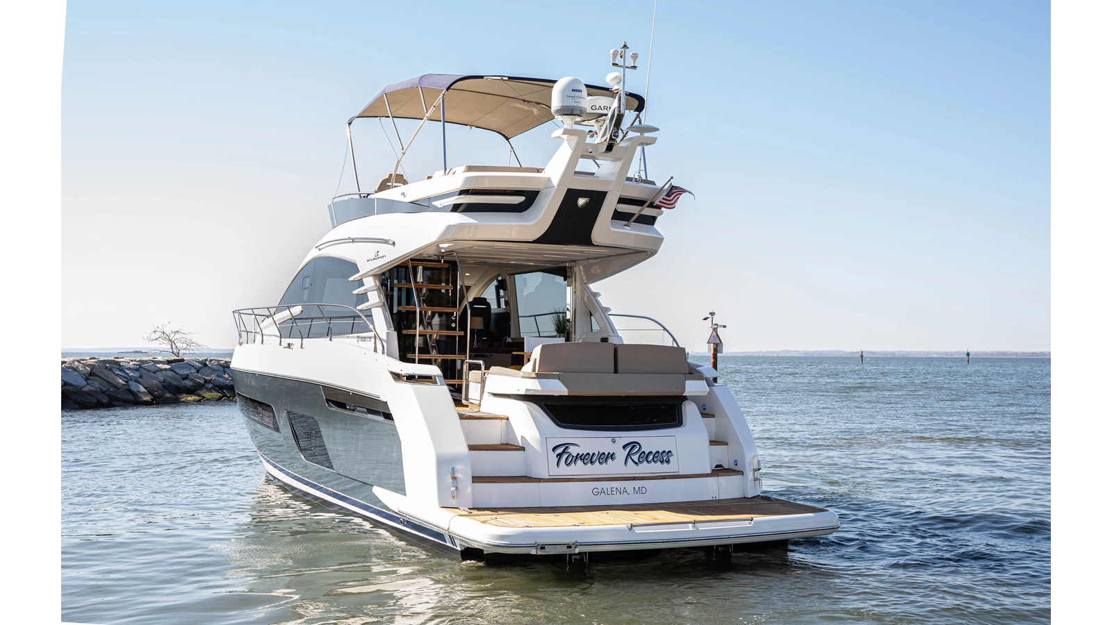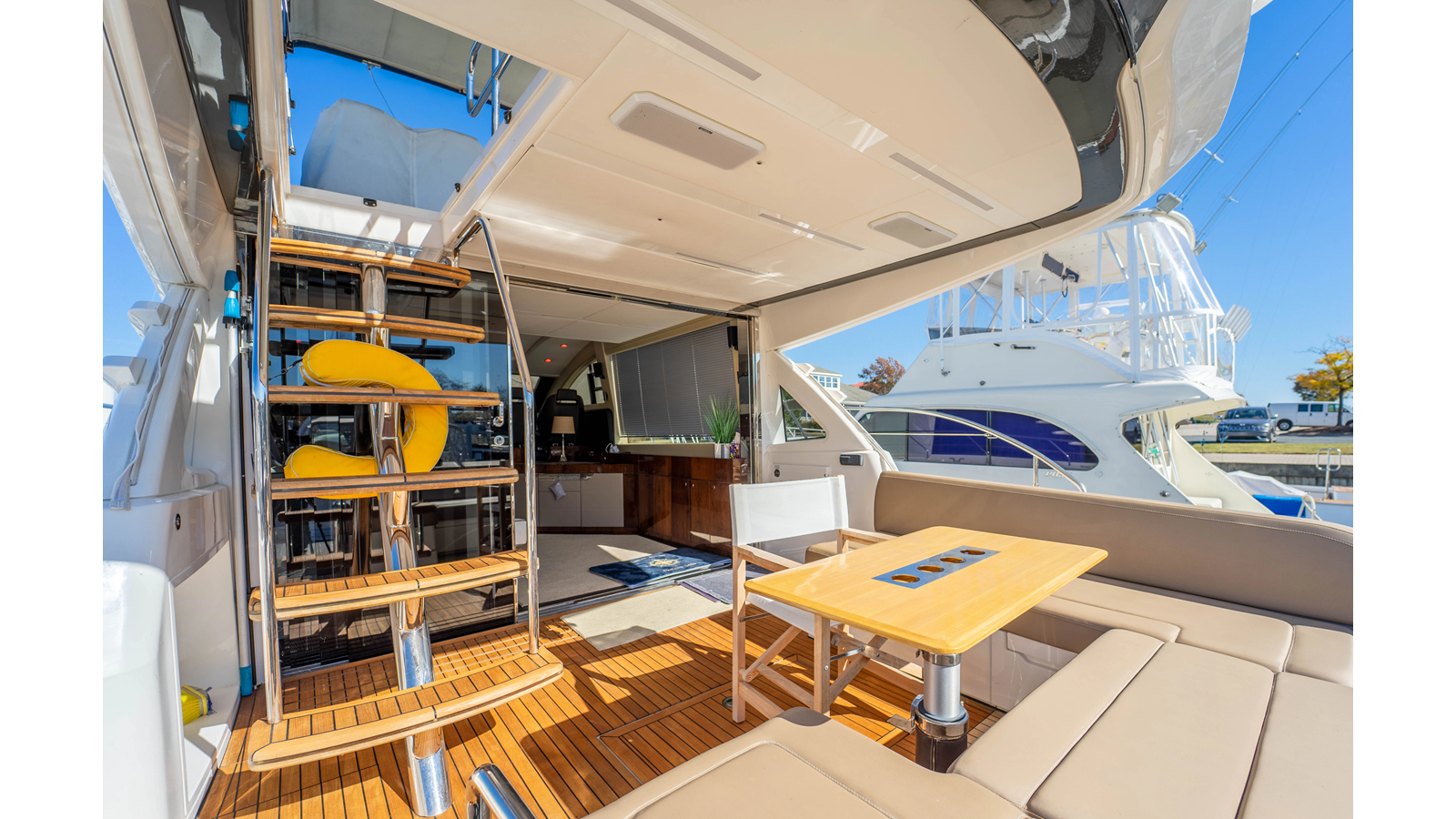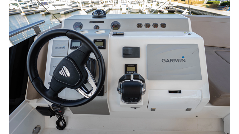 This 53 has the galley up, three cabin, two head floorplan. She has a raked-back flybridge and large aft cockpit. She has been kept in a covered slip in brackish water (70% fresh) since 2019 on the upper Chesapeake Bay of Maryland. Maintained with an open checkbook with mains being recently serviced as well as 1000 service already performed at 965 hours. Super sporty looking and fast with her shaft drive Volvo 725’s she cruises comfortably at 25 and tops out at 32 knots.