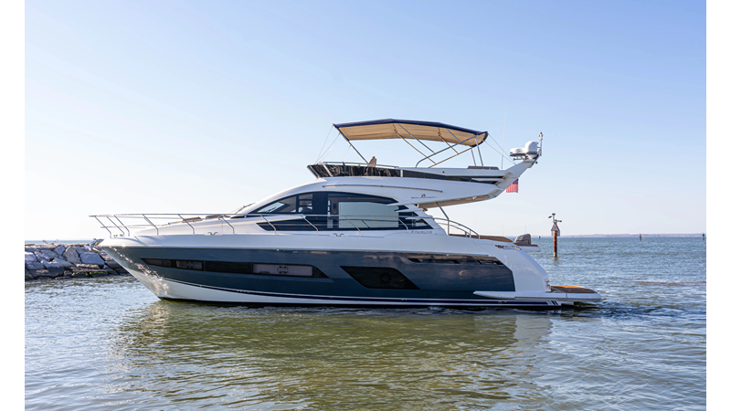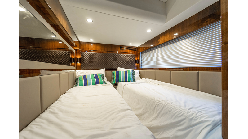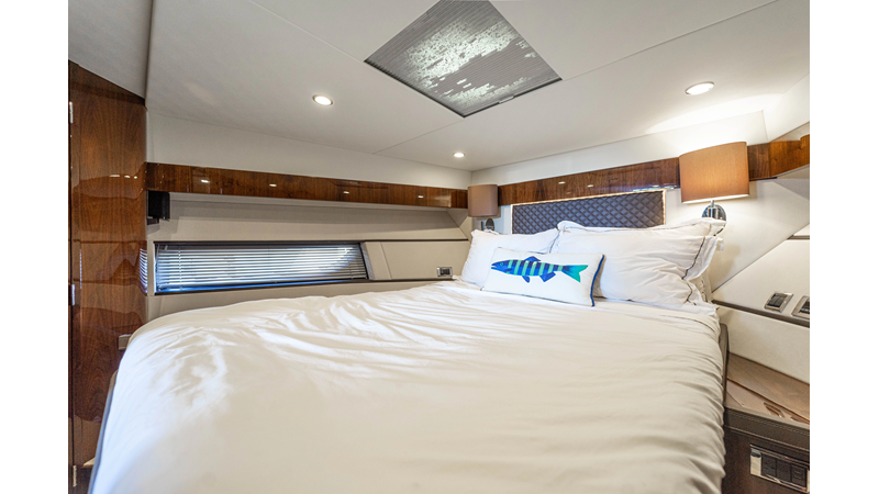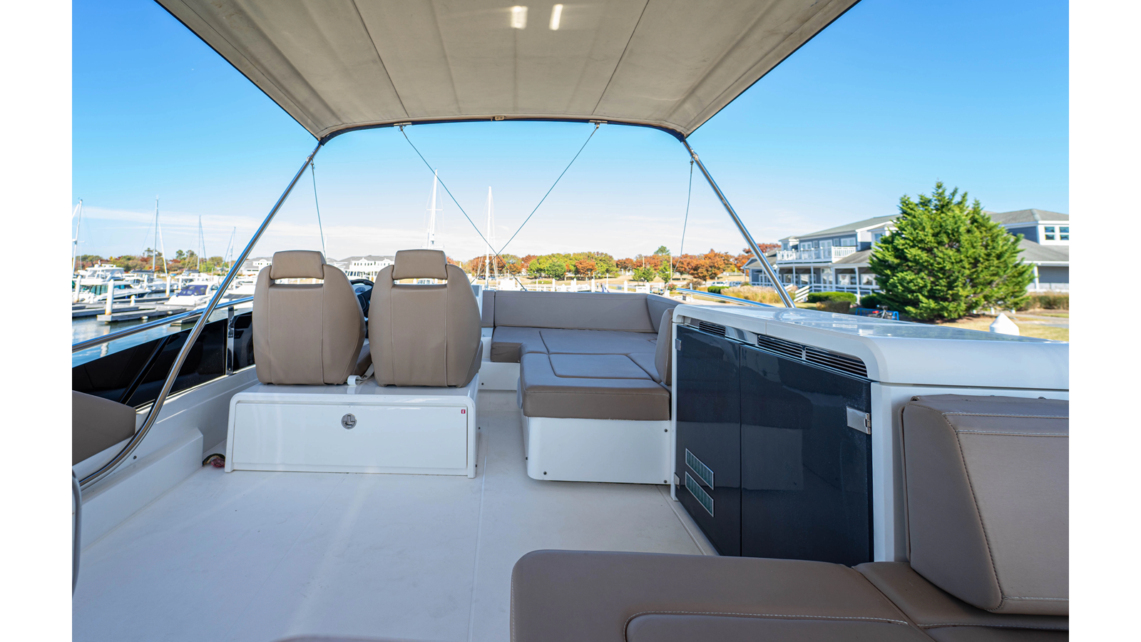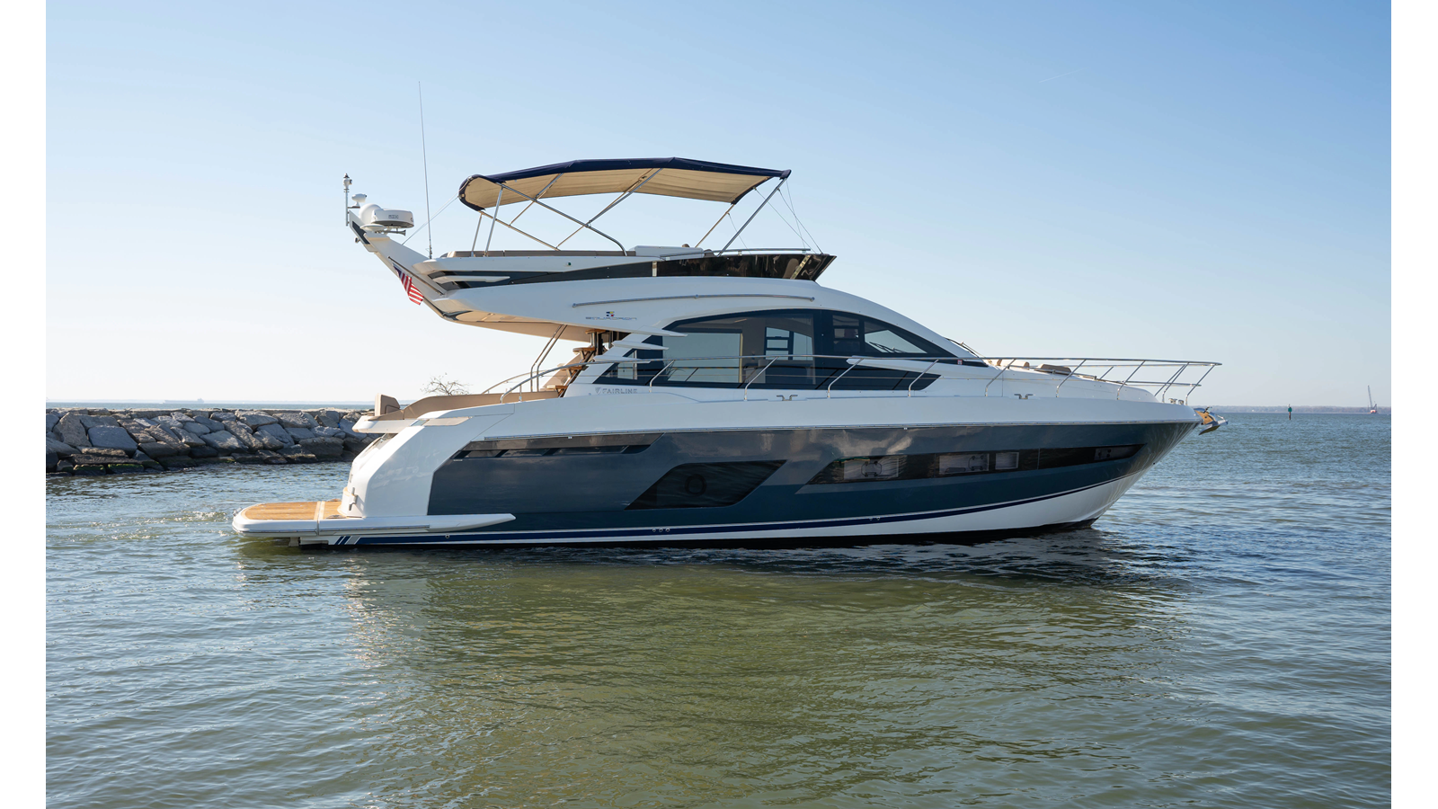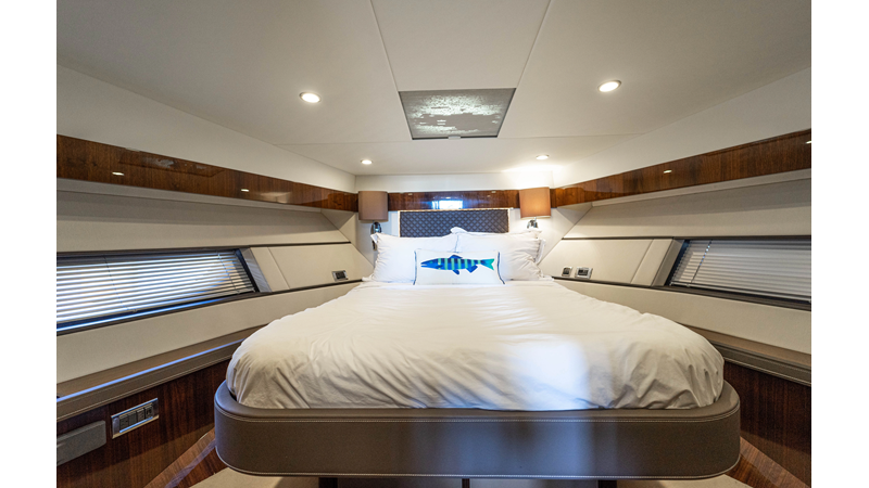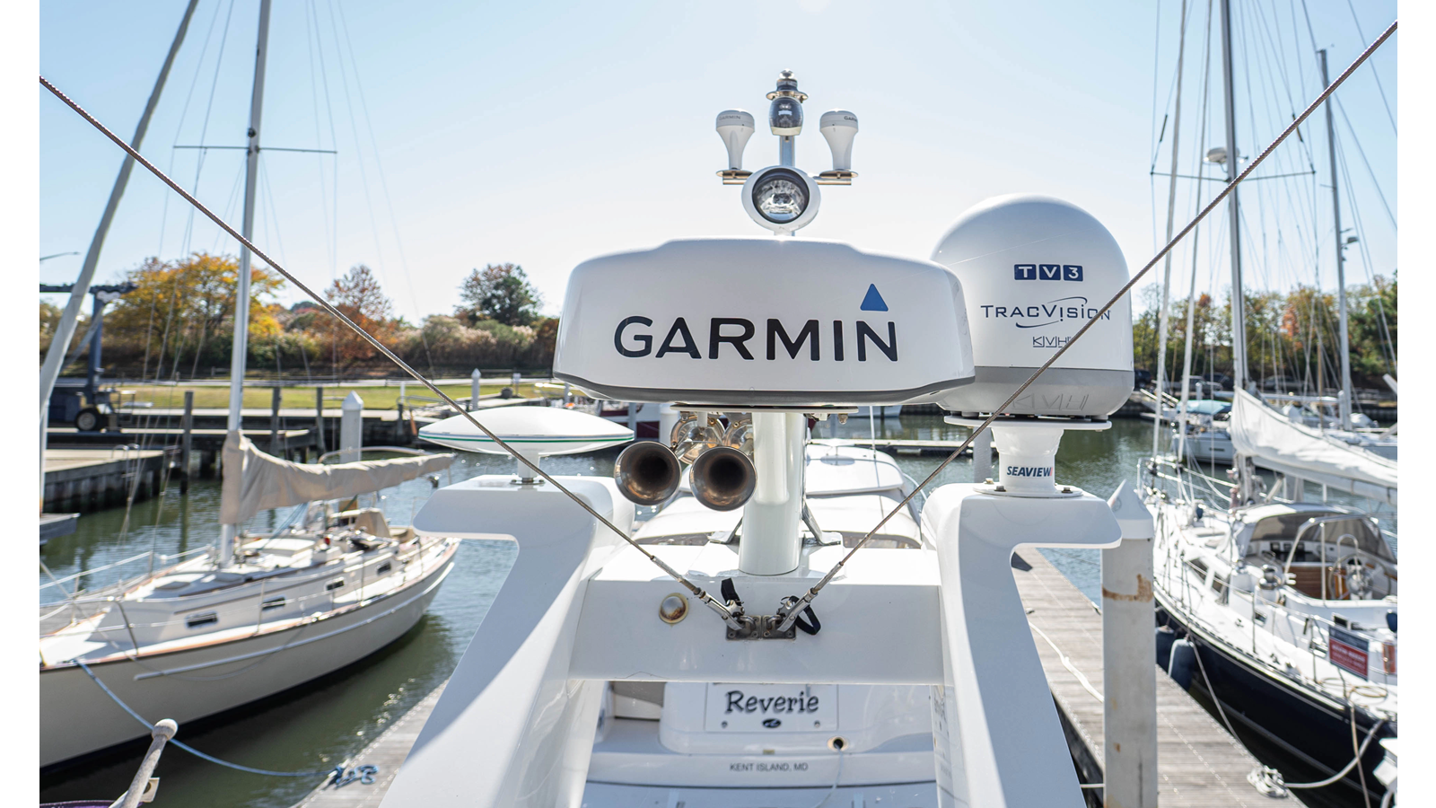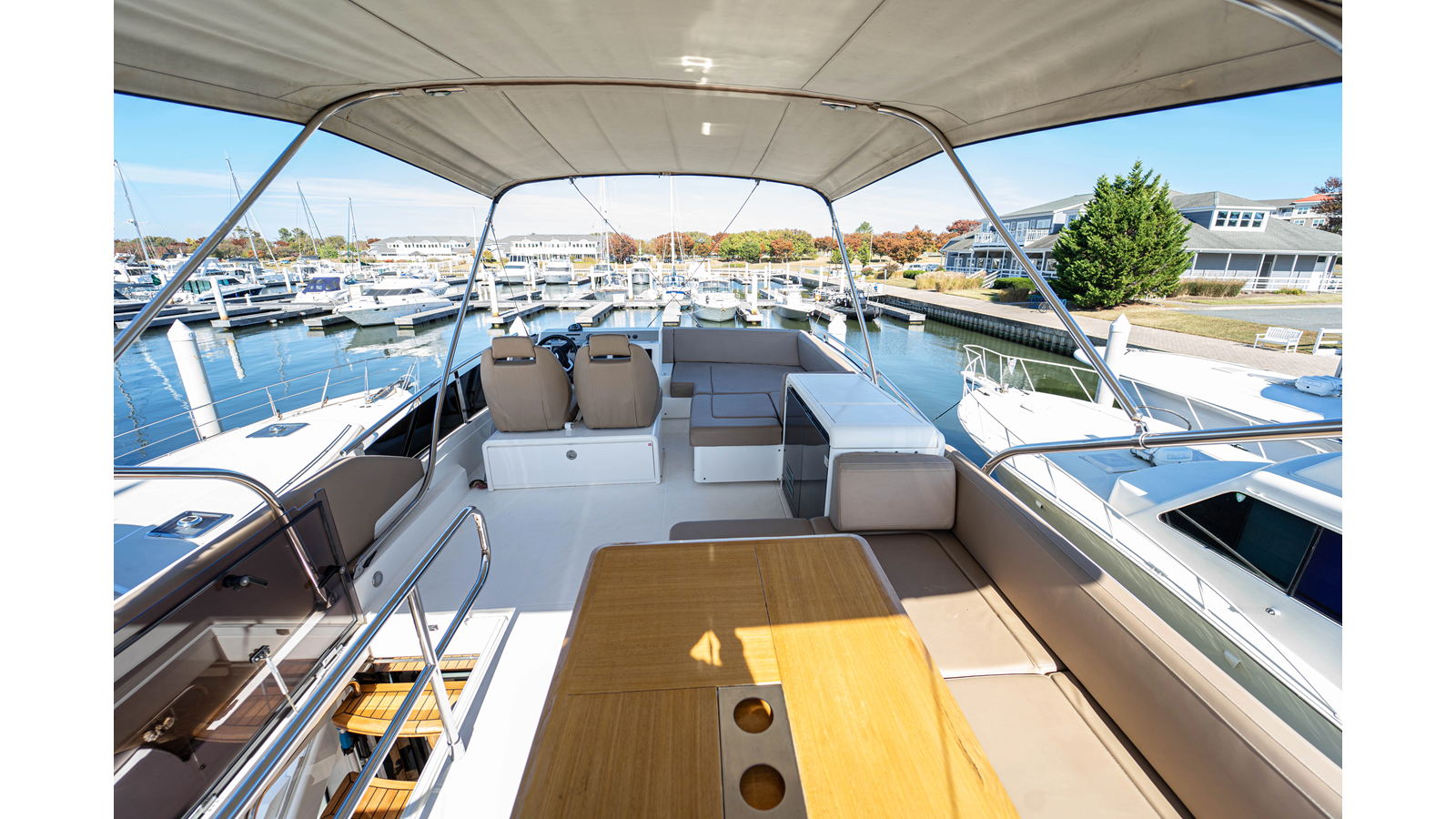 This 53 has the galley up, three cabin, two head floorplan. She has a raked-back flybridge and large aft cockpit. She has been kept in a covered slip in brackish water (70% fresh) since 2019 on the upper Chesapeake Bay of Maryland. Maintained with an open checkbook with mains being recently serviced as well as 1000 service already performed at 965 hours. Super sporty looking and fast with her shaft drive Volvo 725’s she cruises comfortably at 25 and tops out at 32 knots.