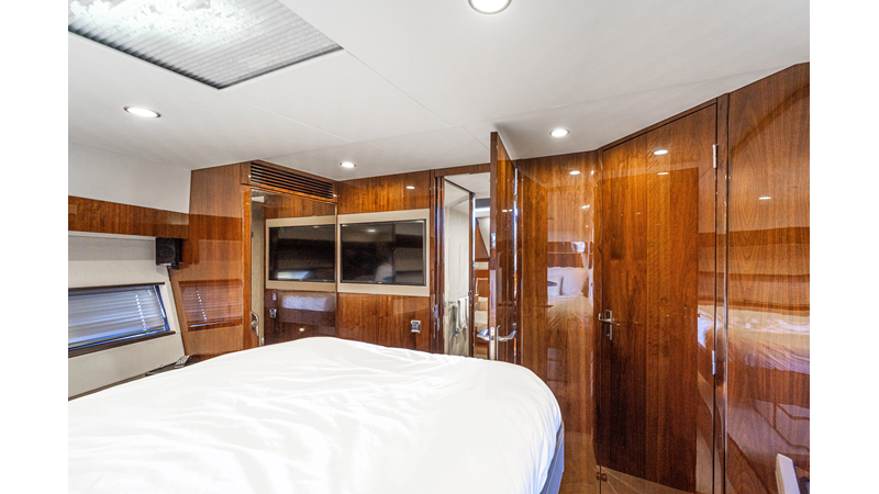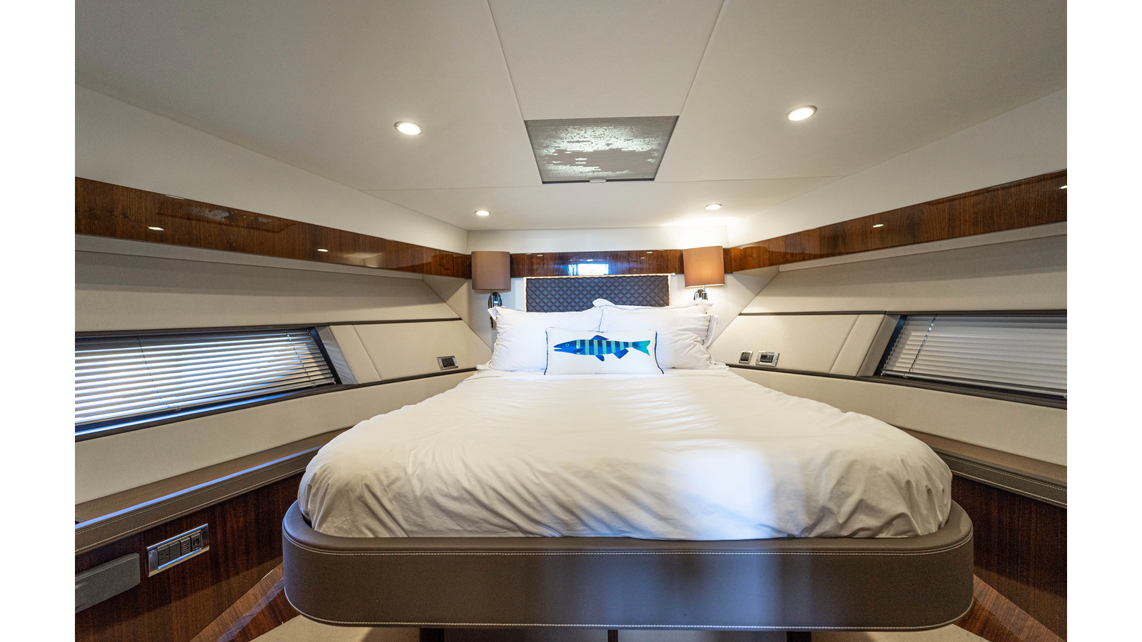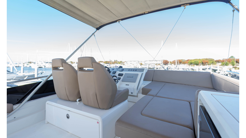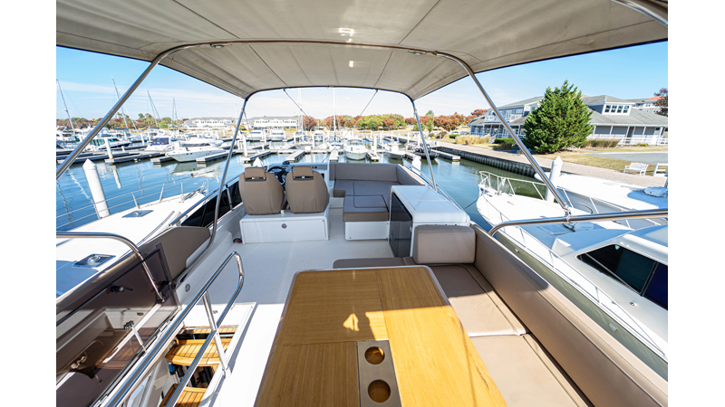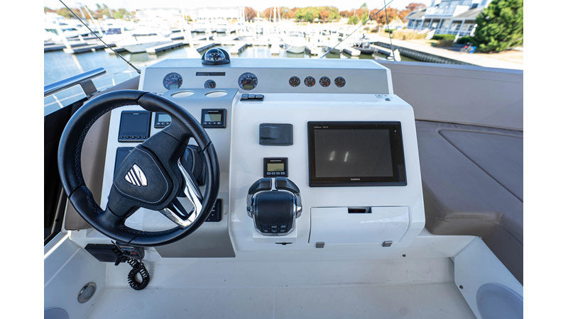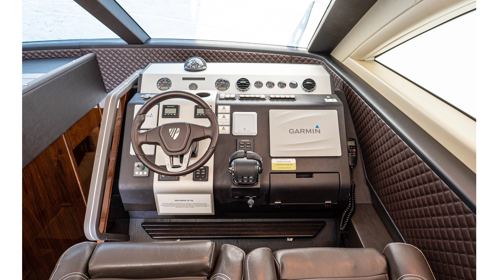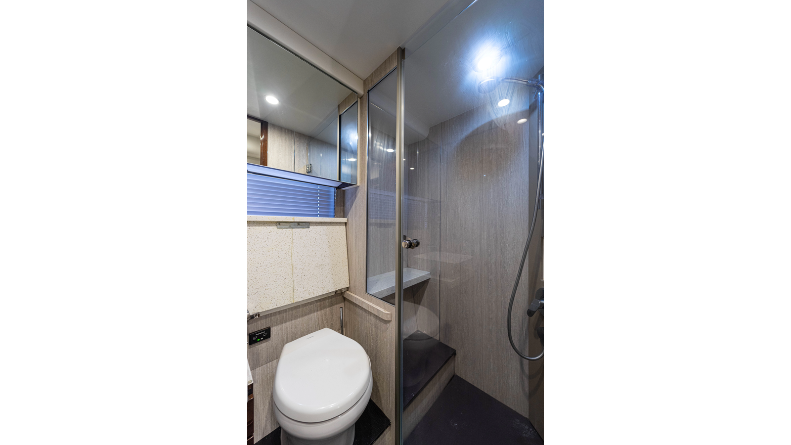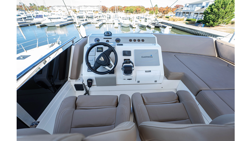 This 53 has the galley up, three cabin, two head floorplan. She has a raked-back flybridge and large aft cockpit. She has been kept in a covered slip in brackish water (70% fresh) since 2019 on the upper Chesapeake Bay of Maryland. Maintained with an open checkbook with mains being recently serviced as well as 1000 service already performed at 965 hours. Super sporty looking and fast with her shaft drive Volvo 725’s she cruises comfortably at 25 and tops out at 32 knots.