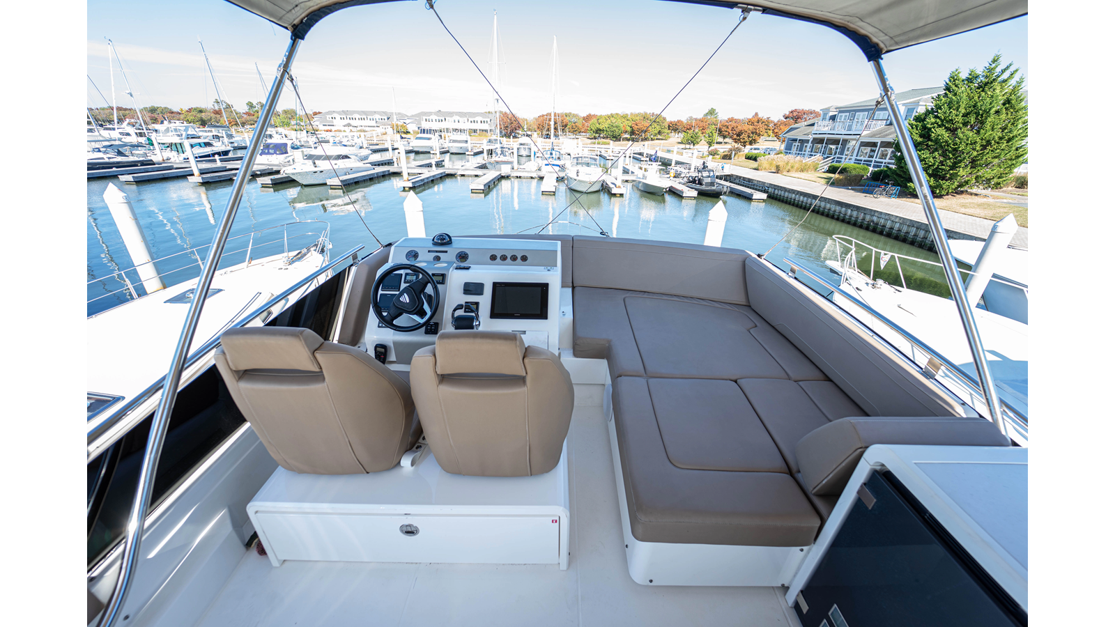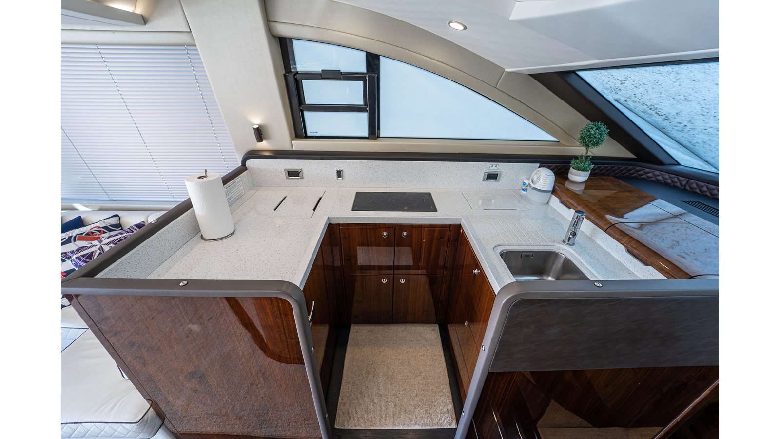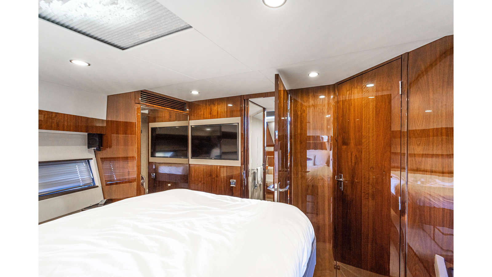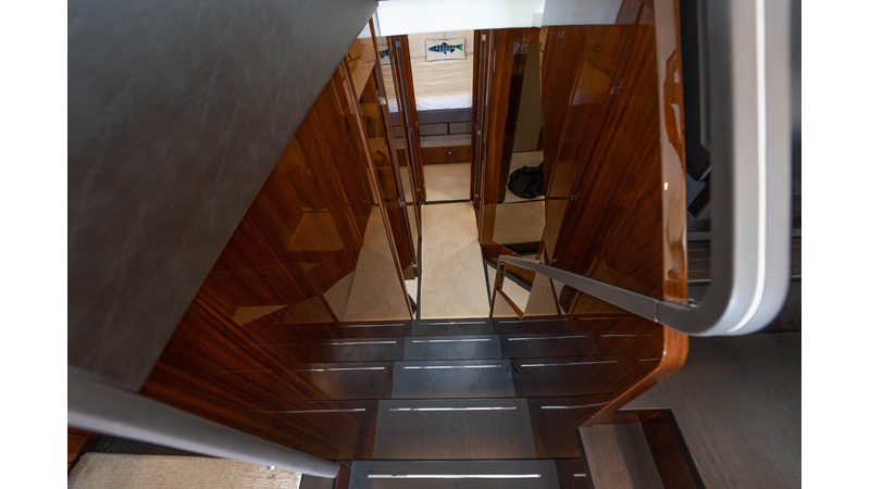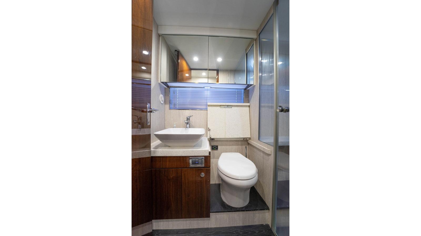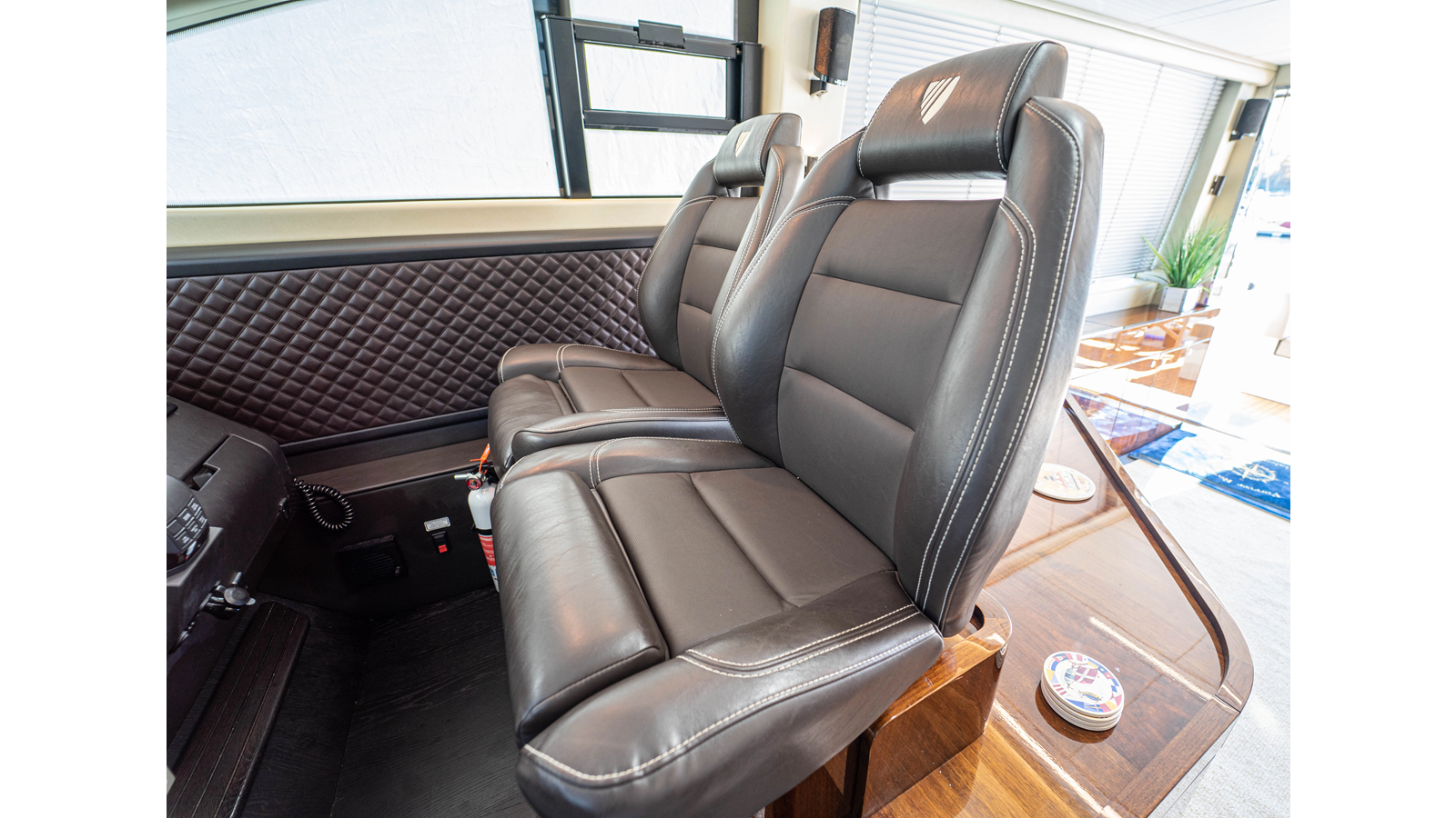 This 53 has the galley up, three cabin, two head floorplan. She has a raked-back flybridge and large aft cockpit. She has been kept in a covered slip in brackish water (70% fresh) since 2019 on the upper Chesapeake Bay of Maryland. Maintained with an open checkbook with mains being recently serviced as well as 1000 service already performed at 965 hours. Super sporty looking and fast with her shaft drive Volvo 725’s she cruises comfortably at 25 and tops out at 32 knots.