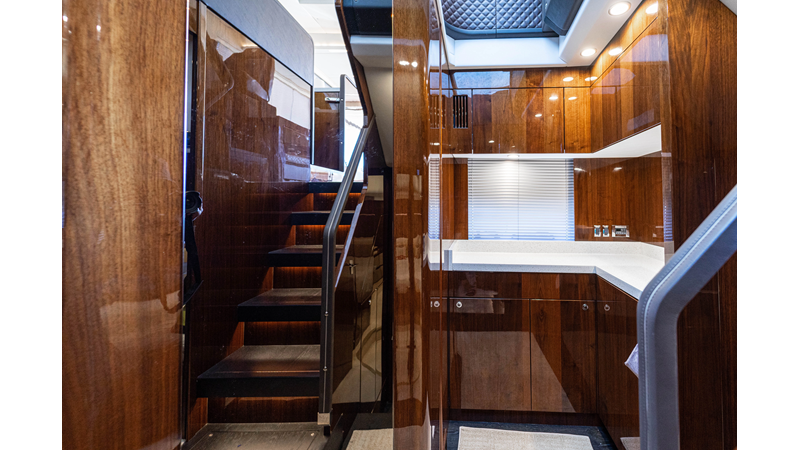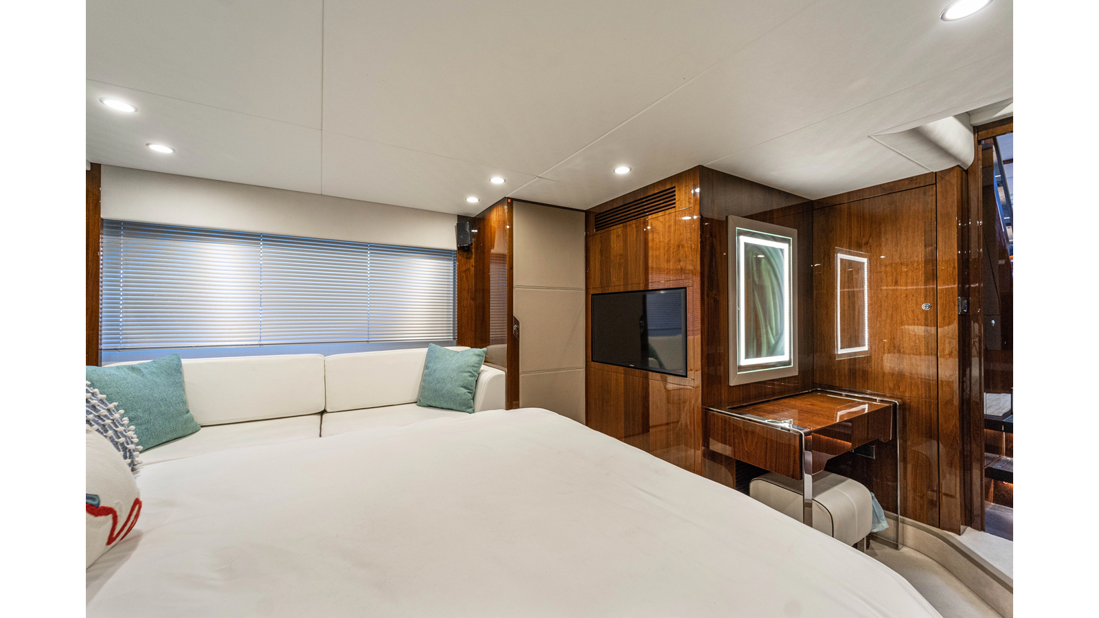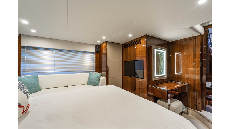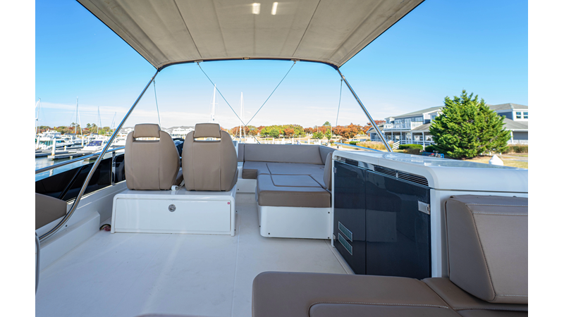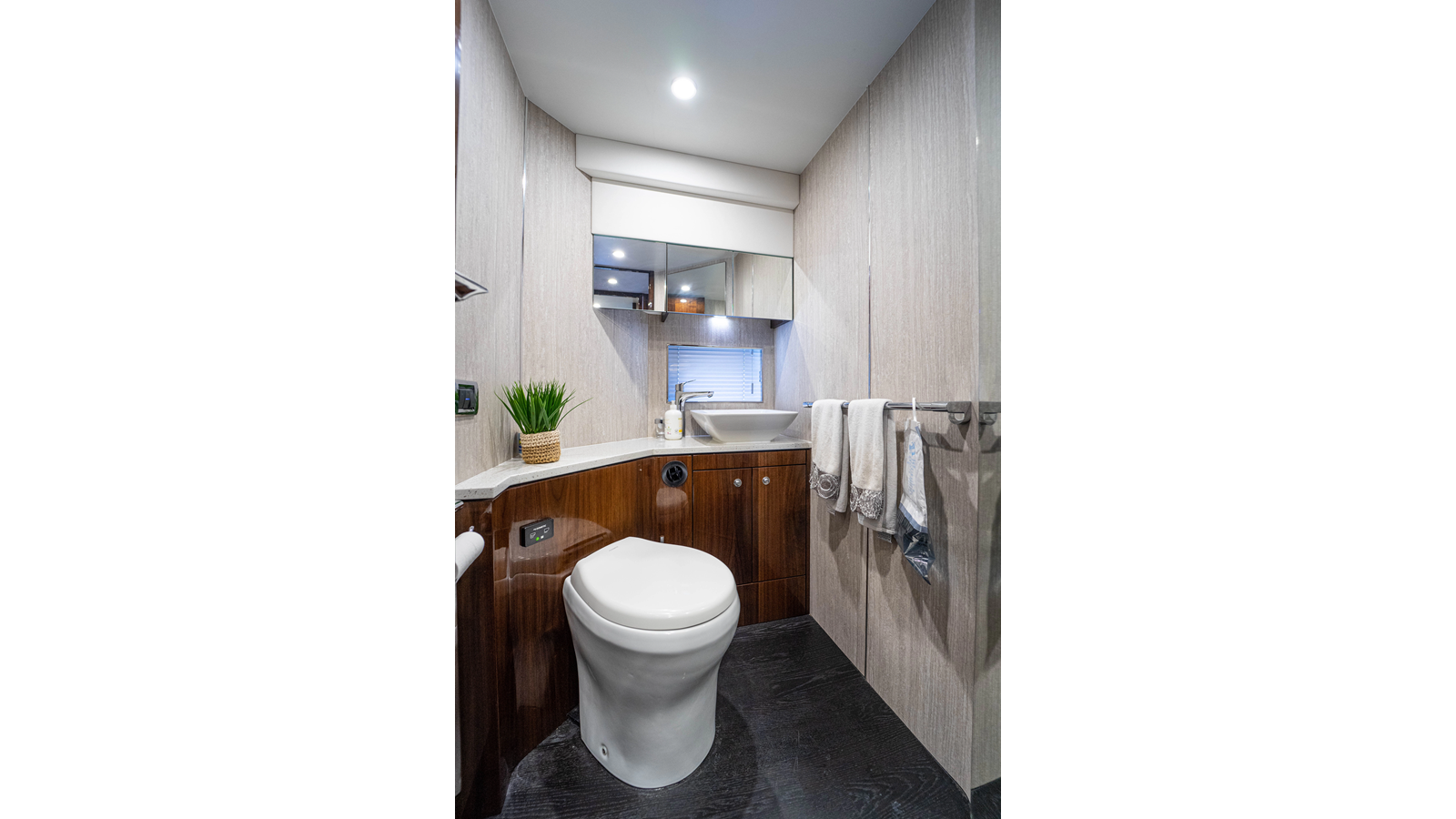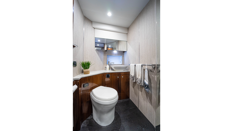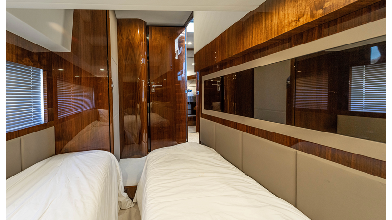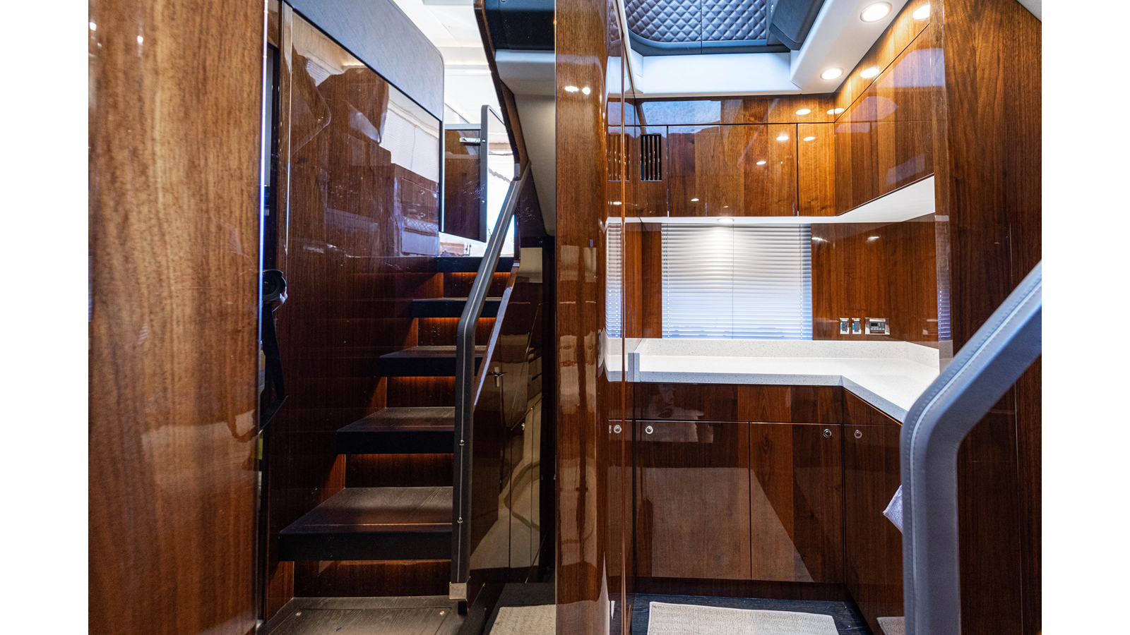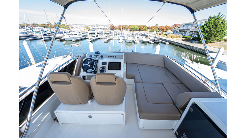 This 53 has the galley up, three cabin, two head floorplan. She has a raked-back flybridge and large aft cockpit. She has been kept in a covered slip in brackish water (70% fresh) since 2019 on the upper Chesapeake Bay of Maryland. Maintained with an open checkbook with mains being recently serviced as well as 1000 service already performed at 965 hours. Super sporty looking and fast with her shaft drive Volvo 725’s she cruises comfortably at 25 and tops out at 32 knots.