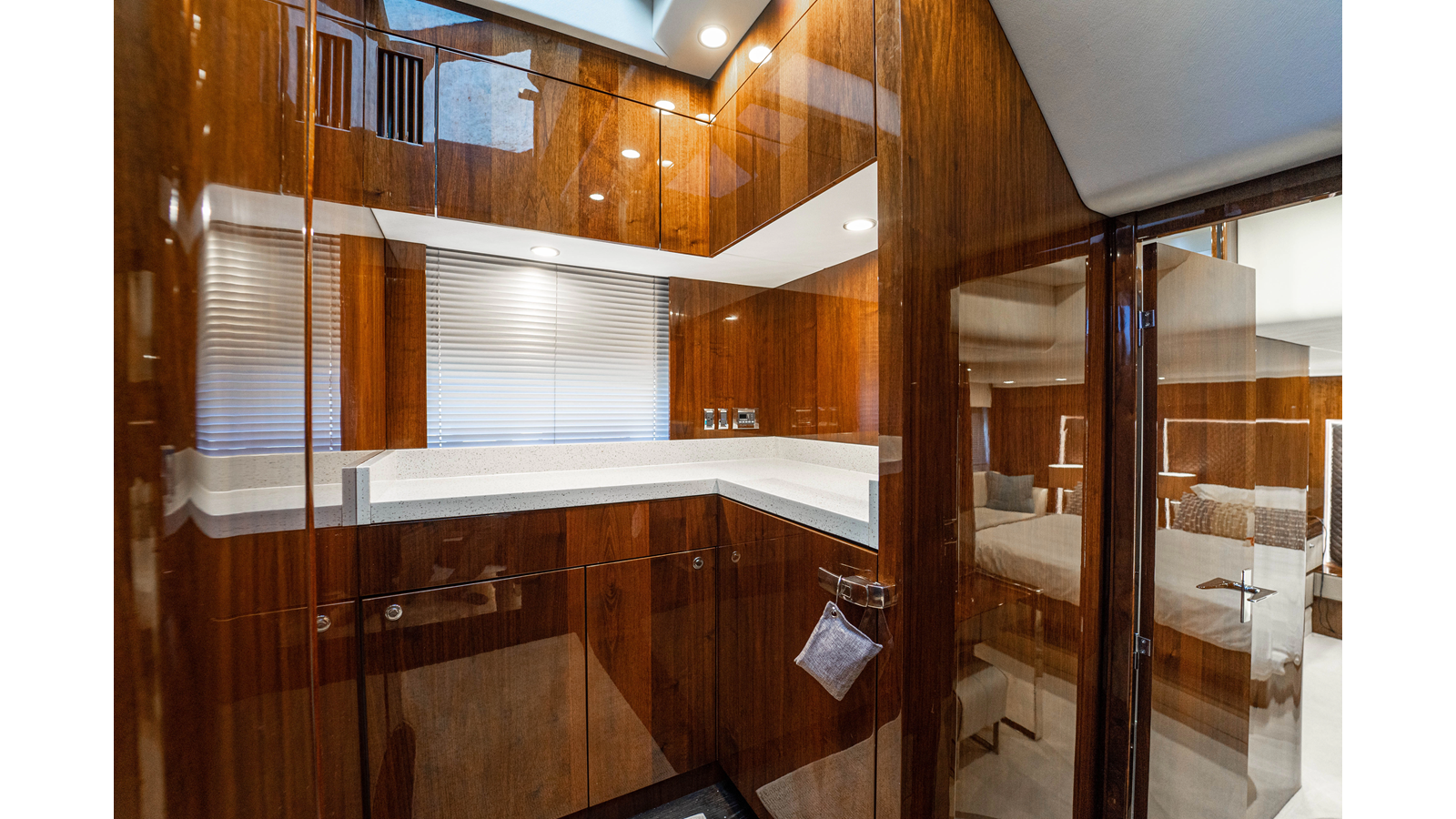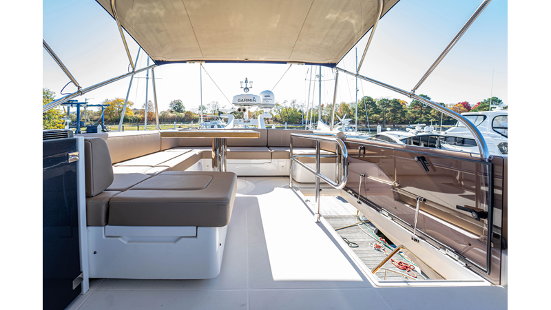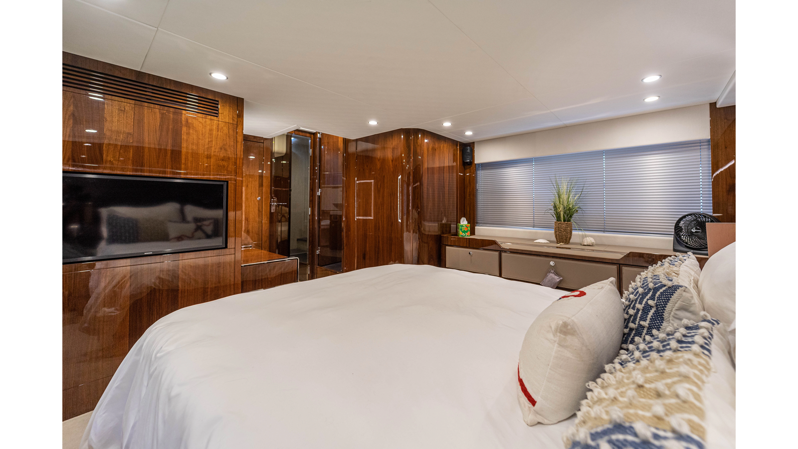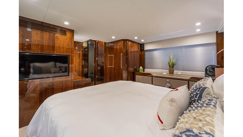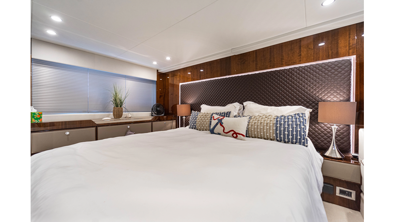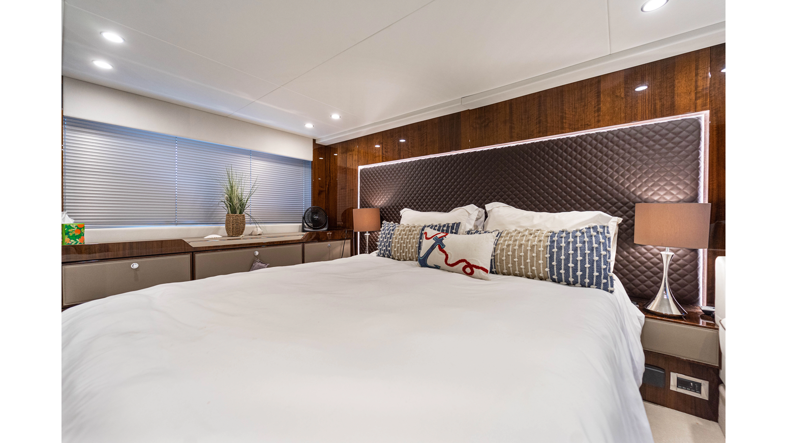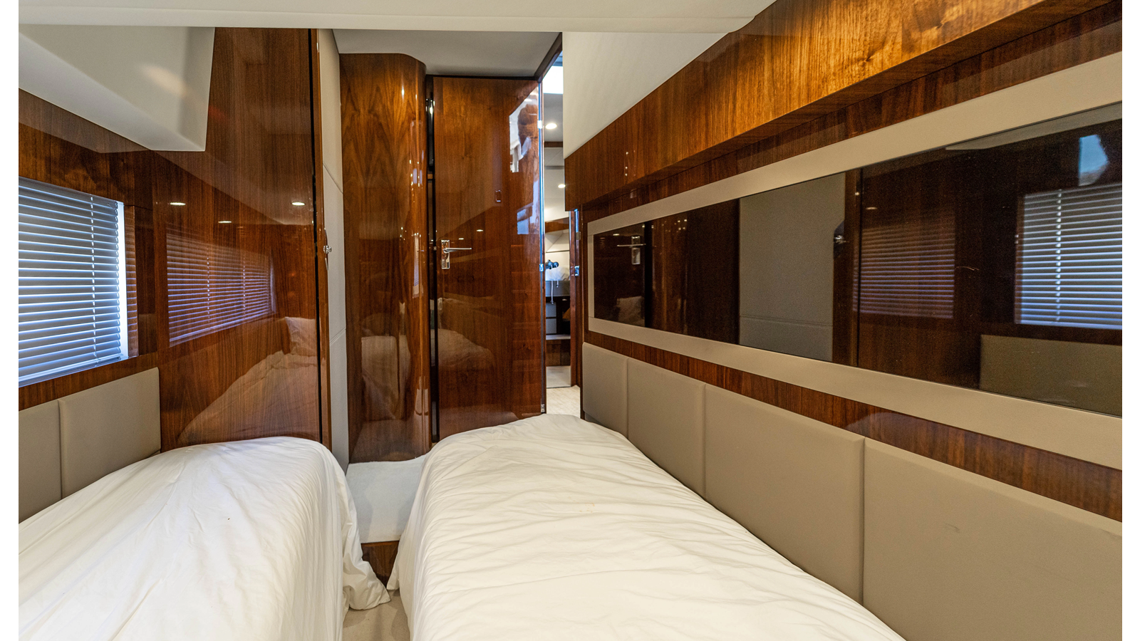 This 53 has the galley up, three cabin, two head floorplan. She has a raked-back flybridge and large aft cockpit. She has been kept in a covered slip in brackish water (70% fresh) since 2019 on the upper Chesapeake Bay of Maryland. Maintained with an open checkbook with mains being recently serviced as well as 1000 service already performed at 965 hours. Super sporty looking and fast with her shaft drive Volvo 725’s she cruises comfortably at 25 and tops out at 32 knots.