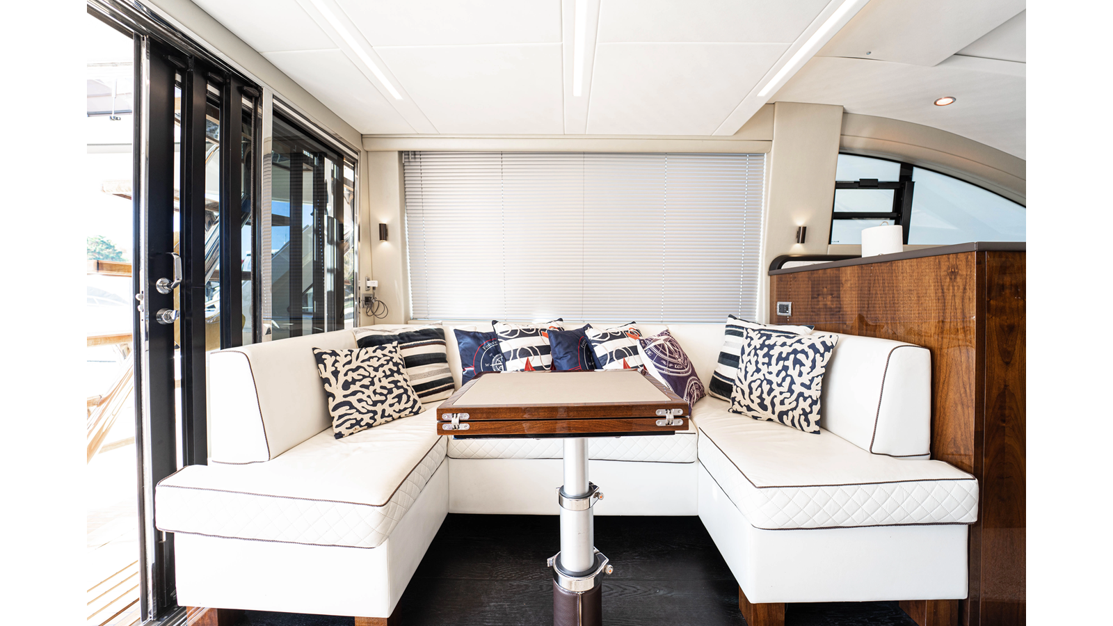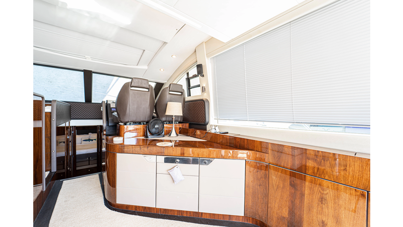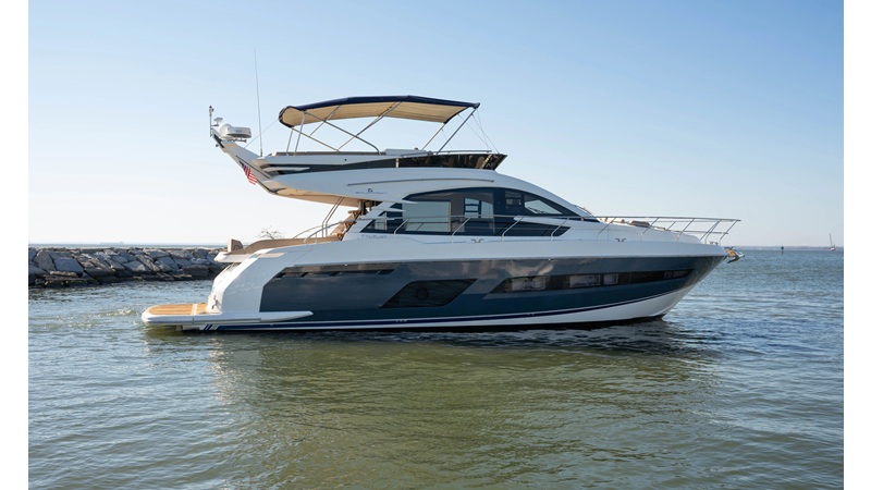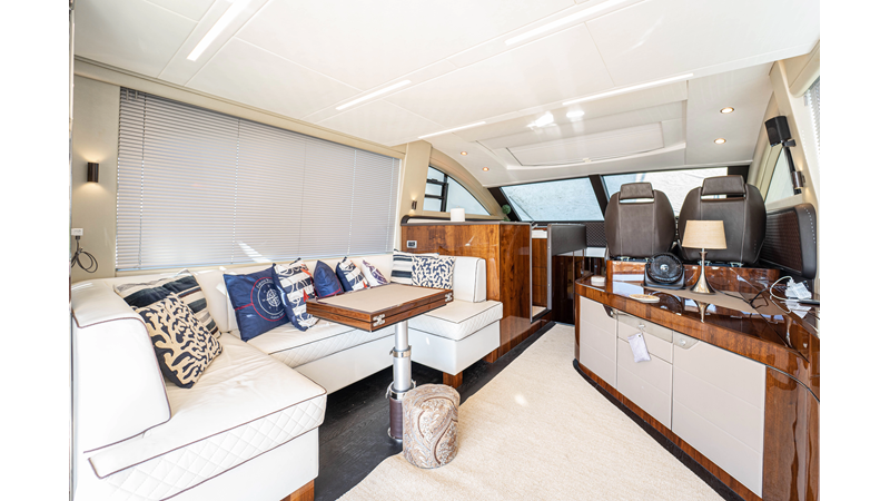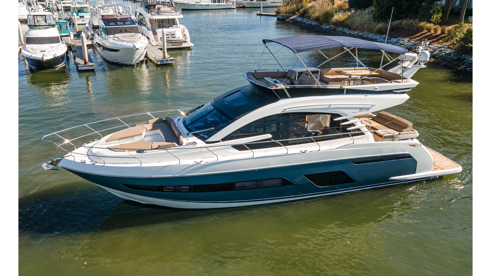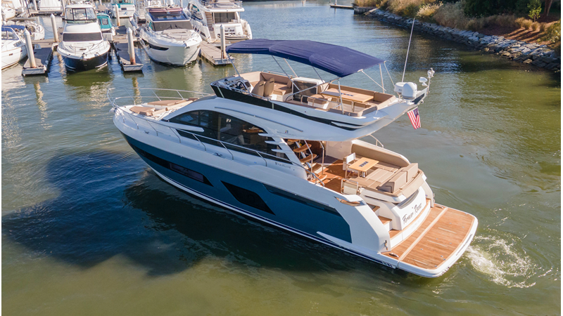 The Fairline Squadron is a dynamic 55-foot luxury cruiser by iconic British yacht manufacturer Fairline Yachts which made its world debut at Boot Dusseldorf in 2017. Since then, this Alberto Mancini-designed model has scooped up such awards as Best Flyer at the Motor Boat Awards and Asia Boating Awards – and with good reason.